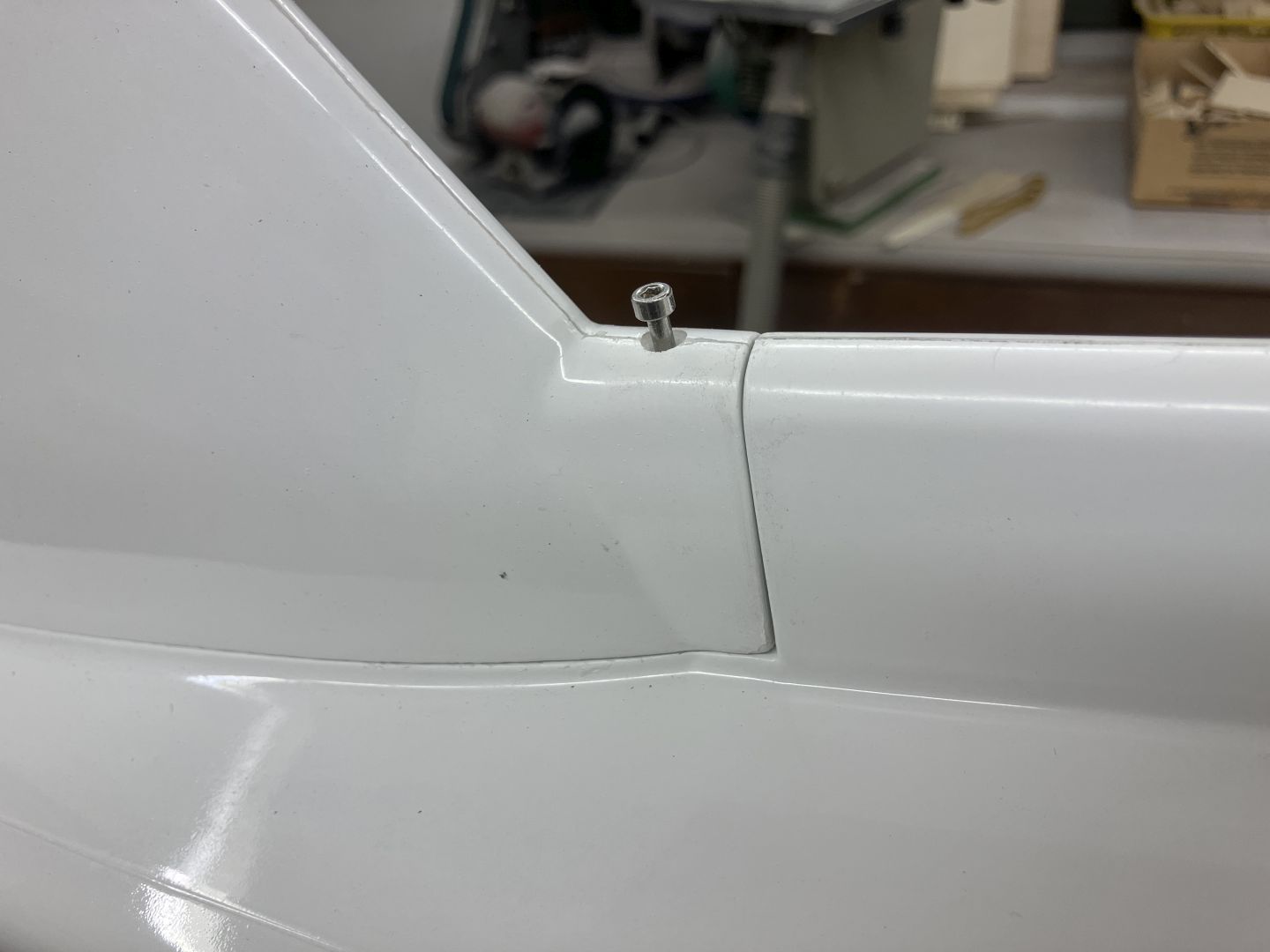 Die Verschraubung vom abnehmbaren Seitenleitwerk