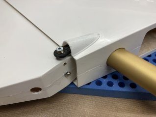 Jetzt können die Bolzen am Flügel gut verklebt werden