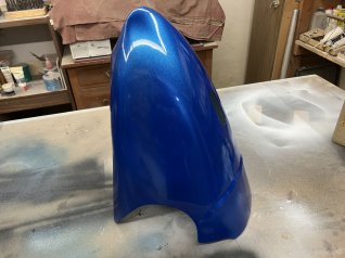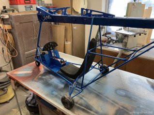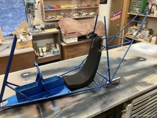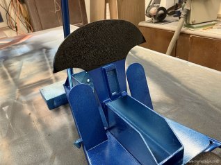 Das Metallgestell ist mit 2K Blau metallic von Ruco Pur gespritzt
