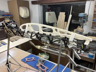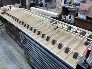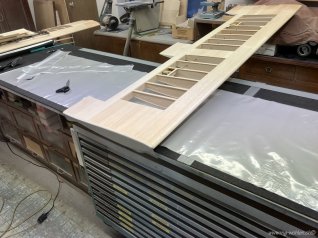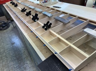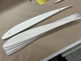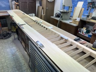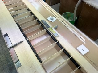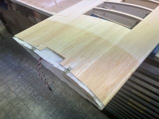 Jetzt wird der ganze Ausleger noch mit 1mm Sperrholz beplankt