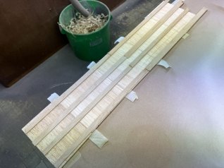 Die 2,5mm Balsarippen werden abgezeichnet und grob ausgeschnitten
