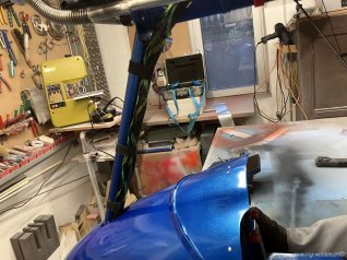 Der Kabelbaum wird nur mit Gwebeband am Rohr befestigt