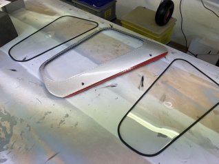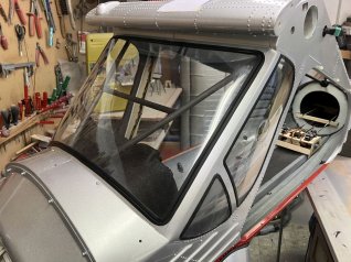 Die V-Streben bei der Frontscheibe werden kopfüber eingeklebt