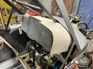 Armaturenbrett fertig angepasst und mit Schrumpffarbe gespritzt