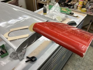 Die Seitenruderanlenkung ist bis zum aushärten fixiert