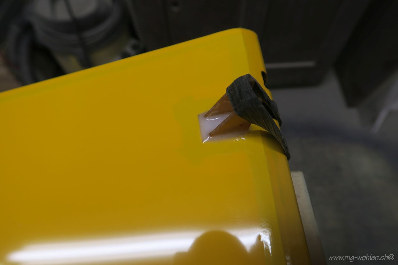 Auf der linken Seite ist der unterere Teil auch schon blau nachgespritzt