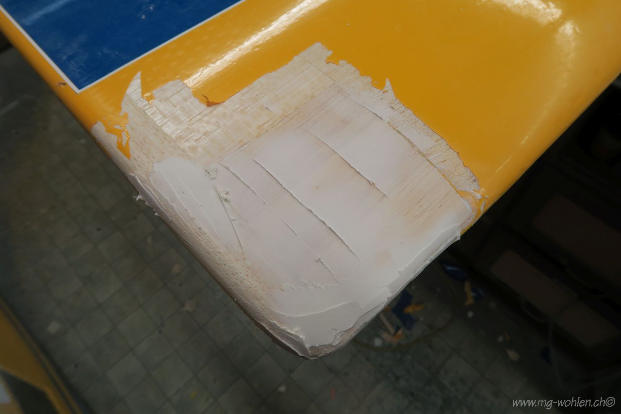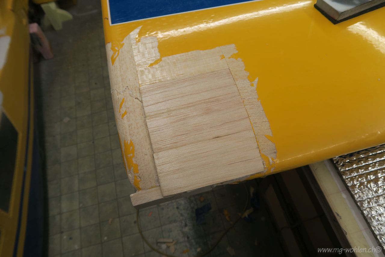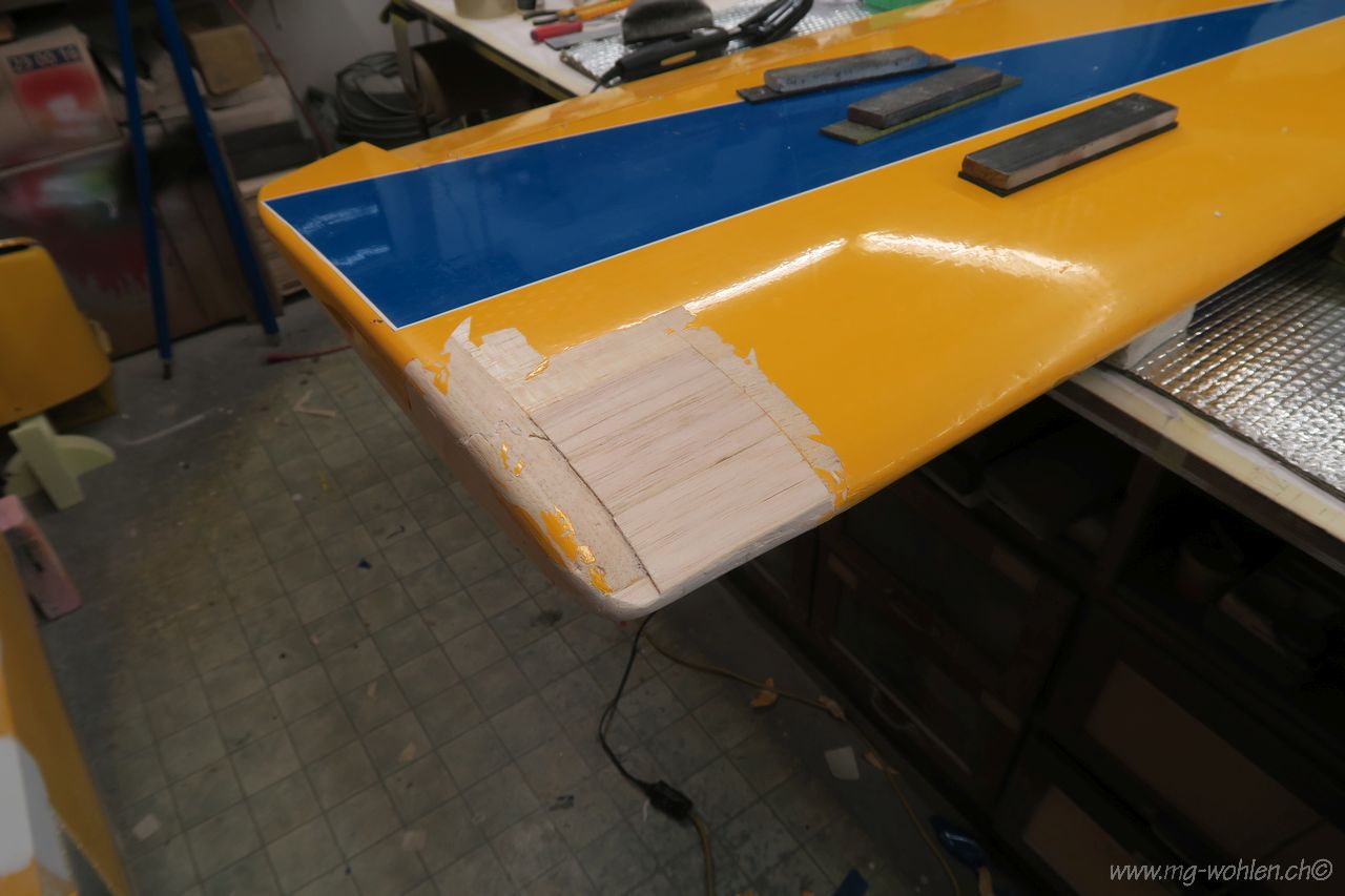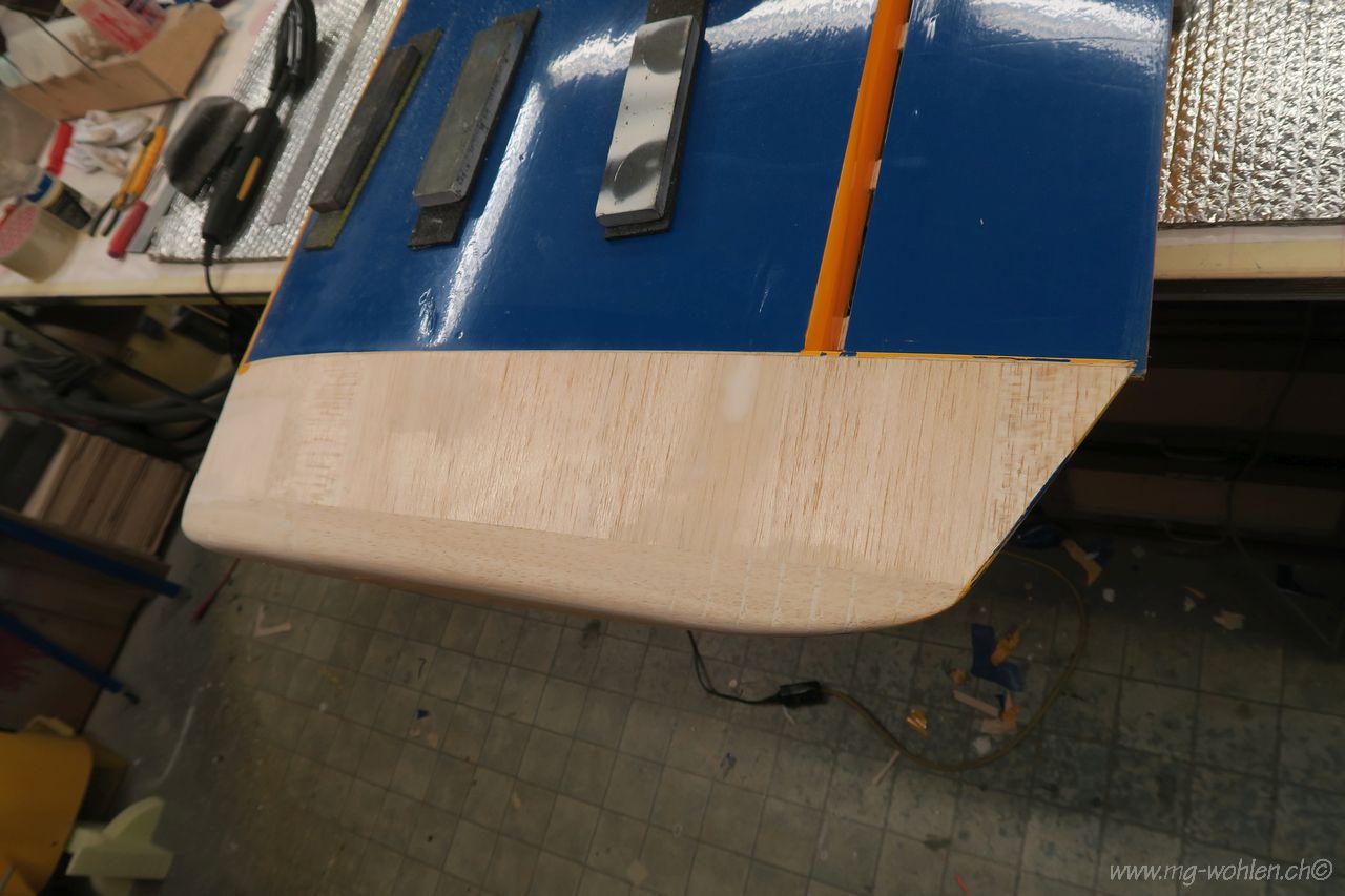 Das Seitenruder ausgetucht und erste Seite neu beplankt