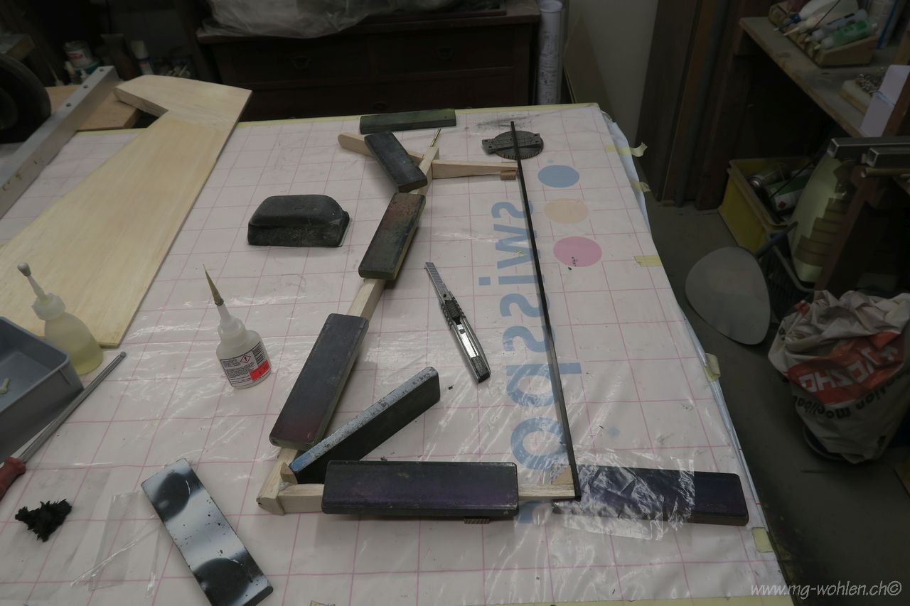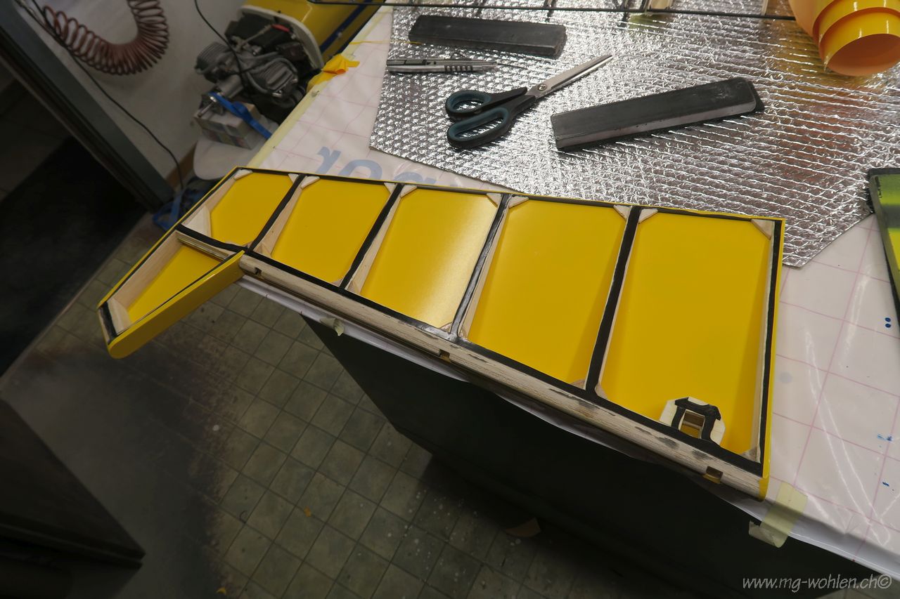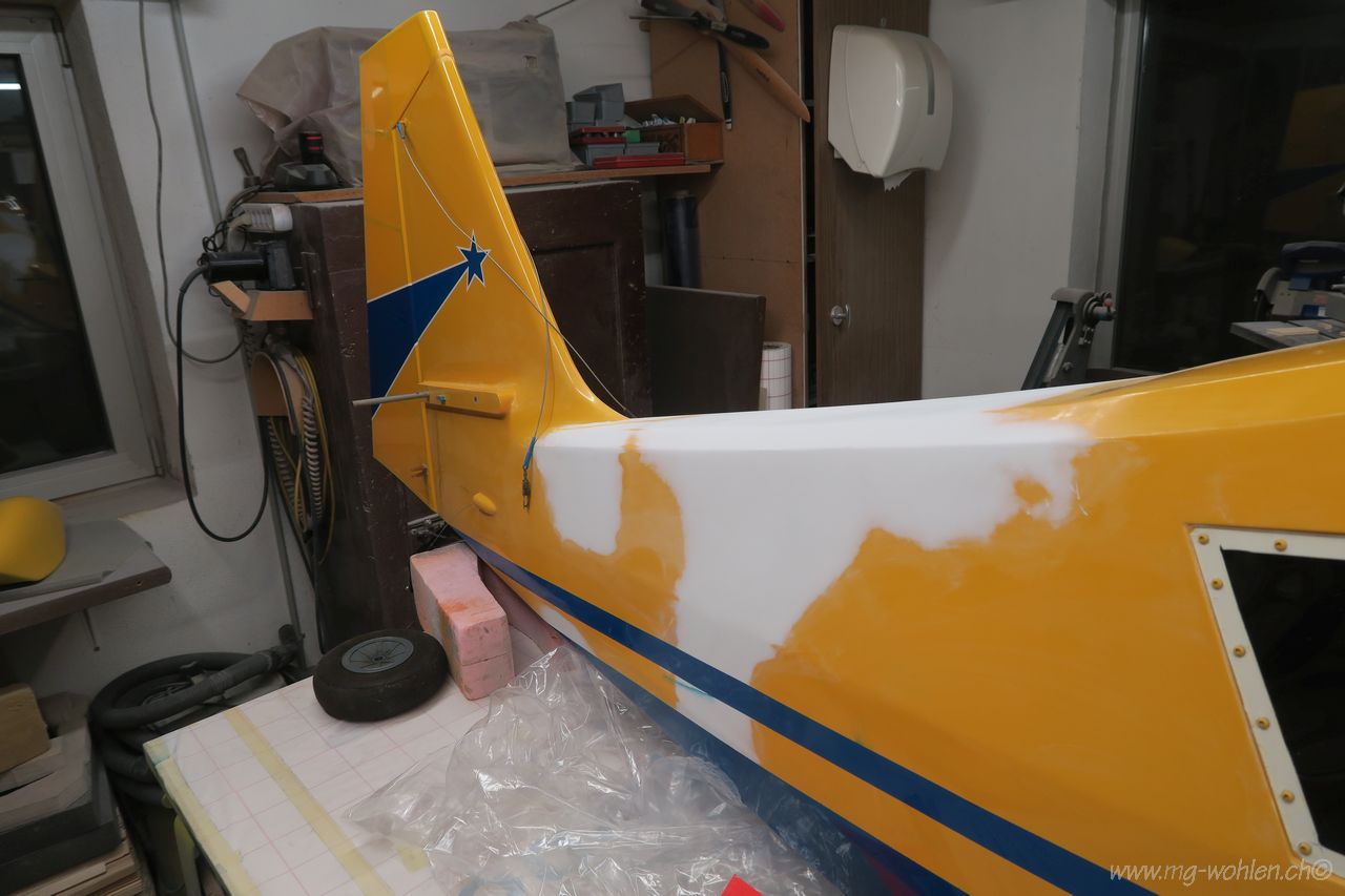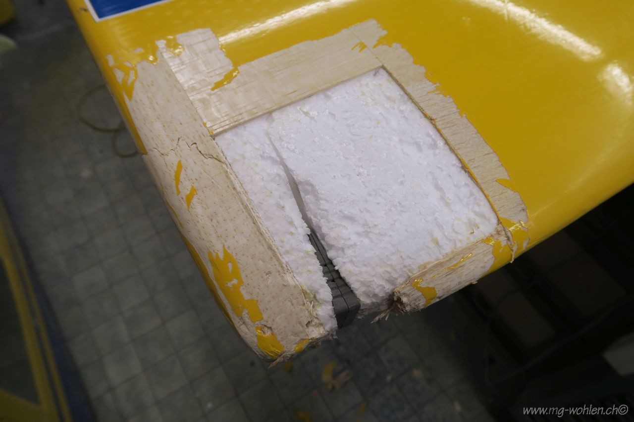 Das Seitenruder ausgetucht und erste Seite neu beplankt
