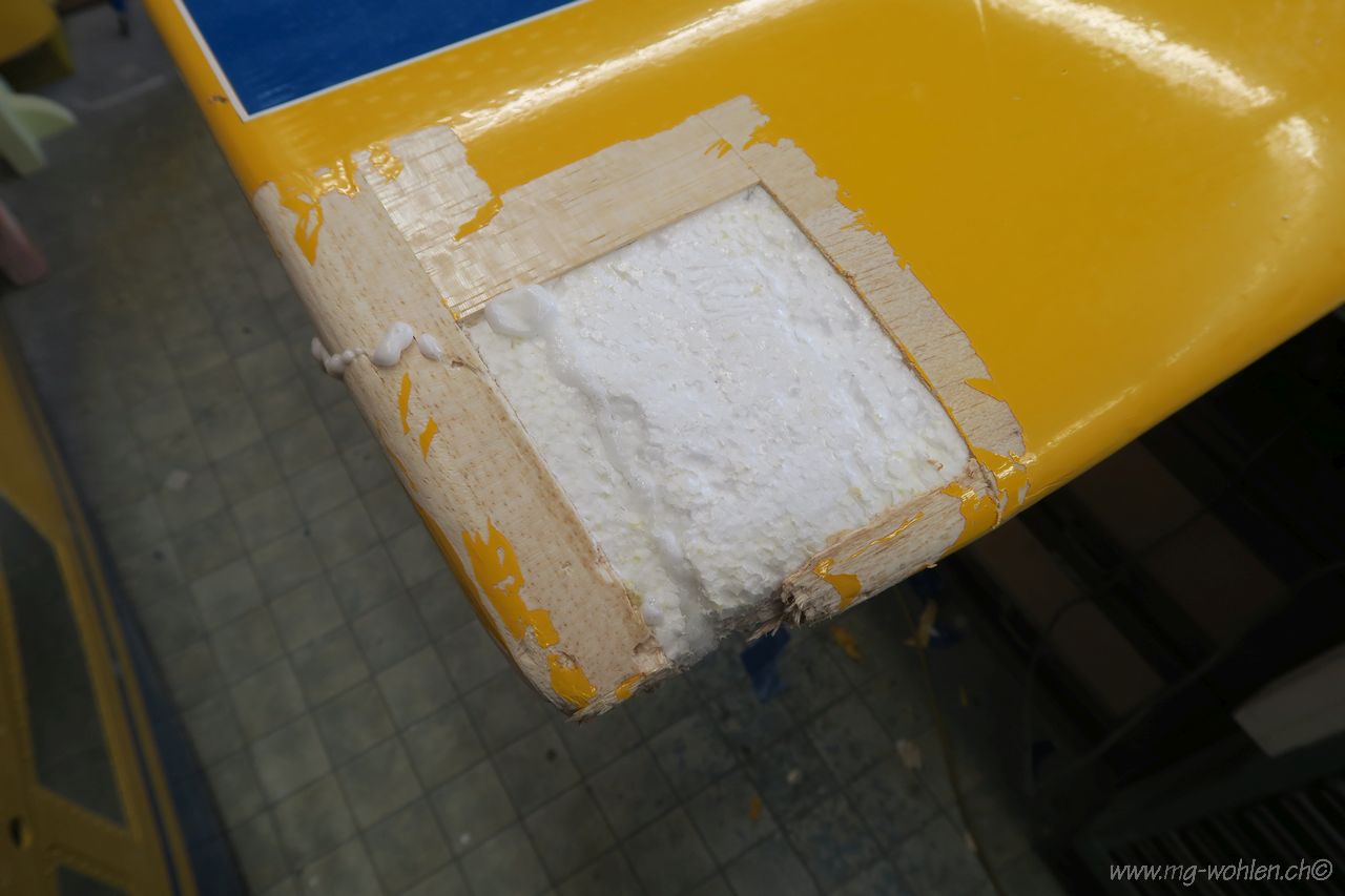 Nach dem geraderichten vom Randbogen wird der Hohlraum mit Schaum ausgefüllt