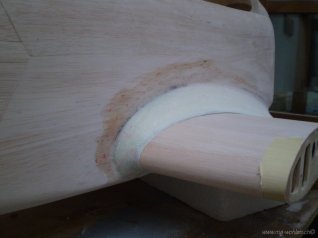 Übergang Rumpf-Flügel, der Karton hat die Dicke des späteren Glaslaminates