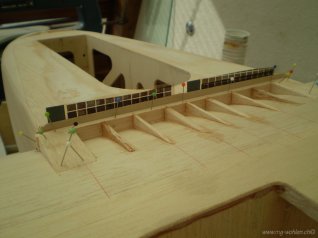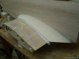 Die obere 2 mm Balsabeplankung ist aufgebracht