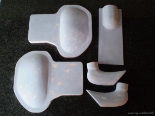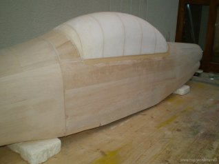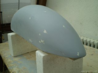 Haubenpositiv geglast (3 Lagen 80er Köpergewebe), gespachtelt, grundiert und geschliffen