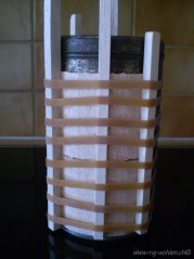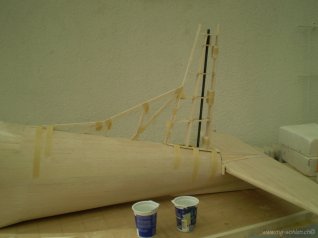 Einpassen der Stringer aus 5x10 mm Kieferleisten und des Steckungsrohres