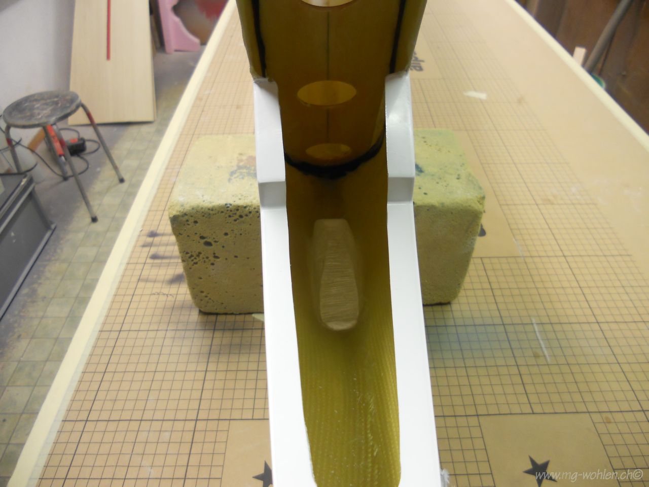Als Erstes wird die Flügelsteckung eingeharzt