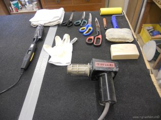 Folie zuschneiden und rundherum anheften