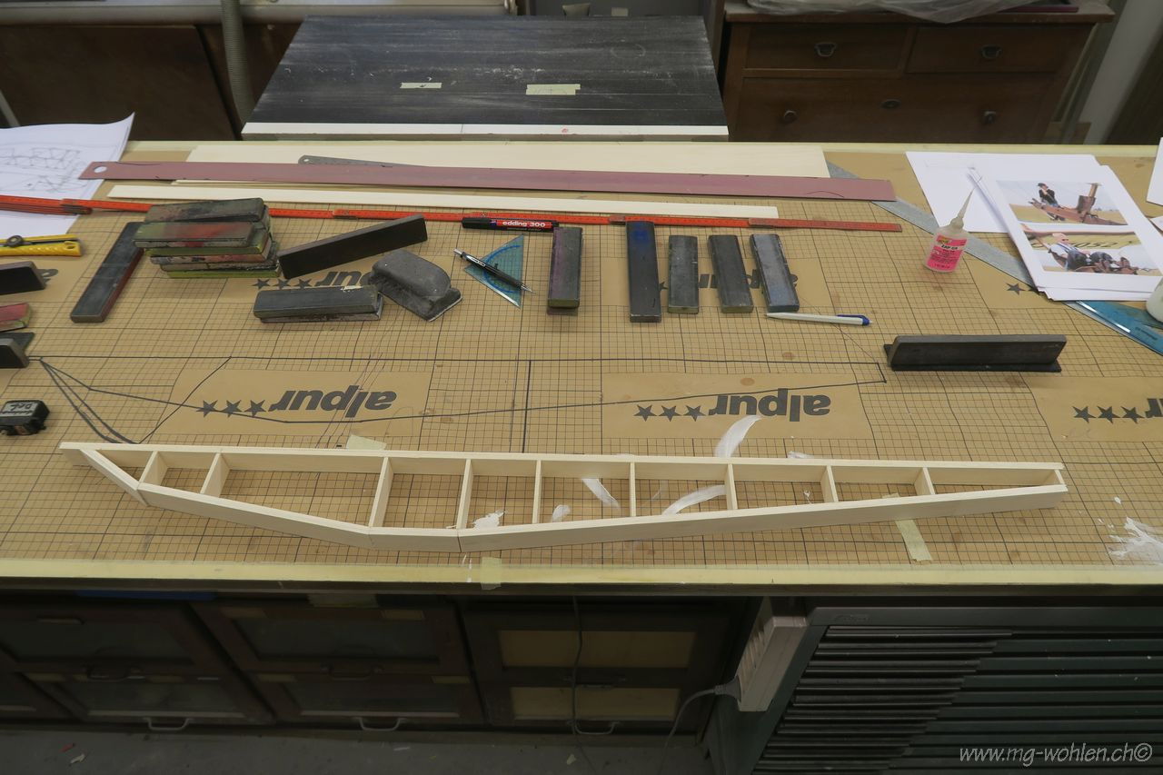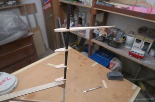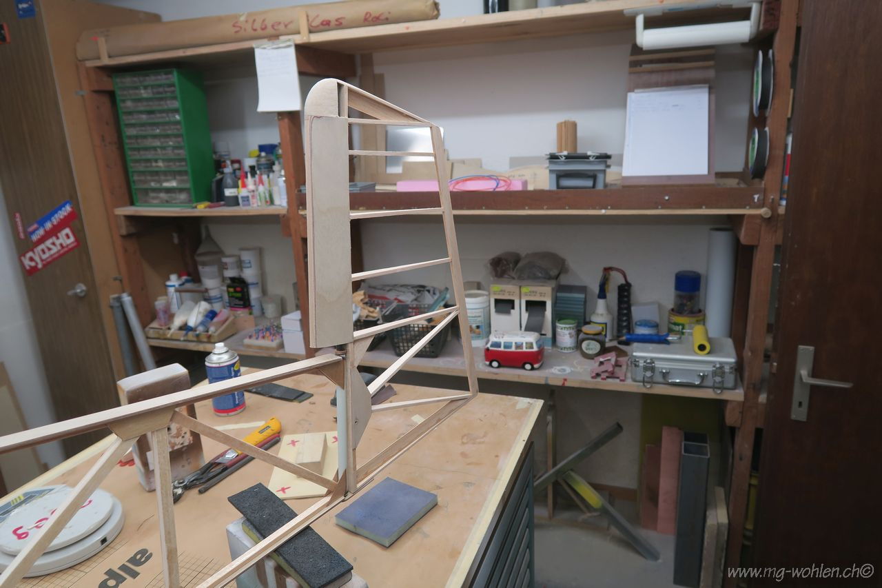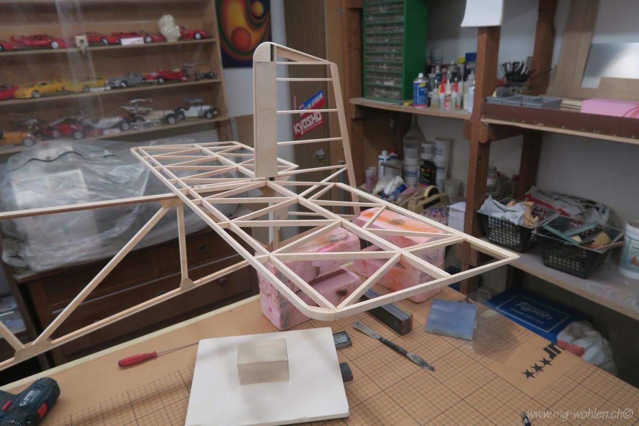 Mein Zögling sollte kein Scale Modell werden und als Experimental gelten, so konnte ich den Bau mit einfachen Mitteln und auch mit Abänderungen in Angriff nehmen.