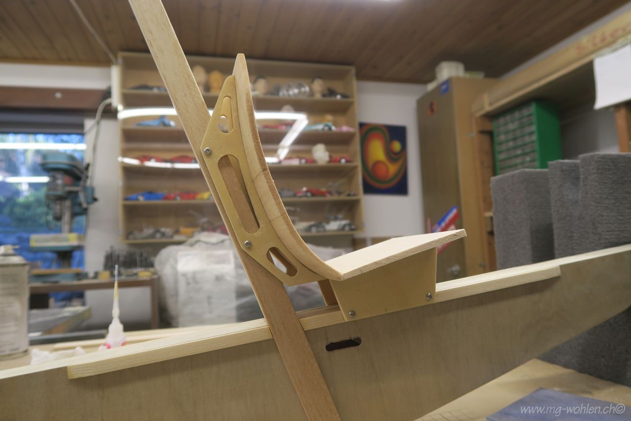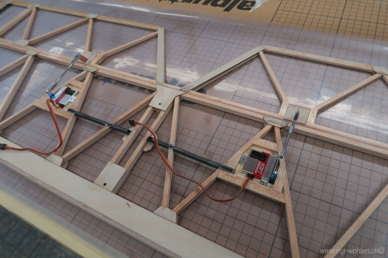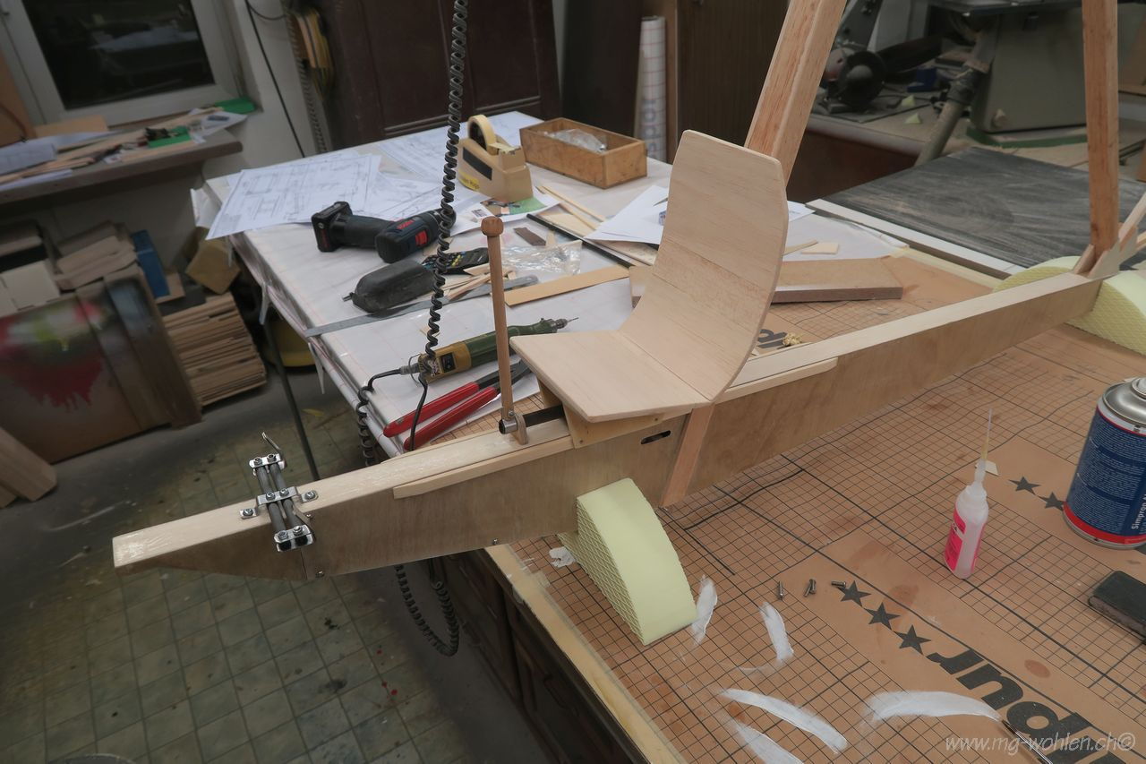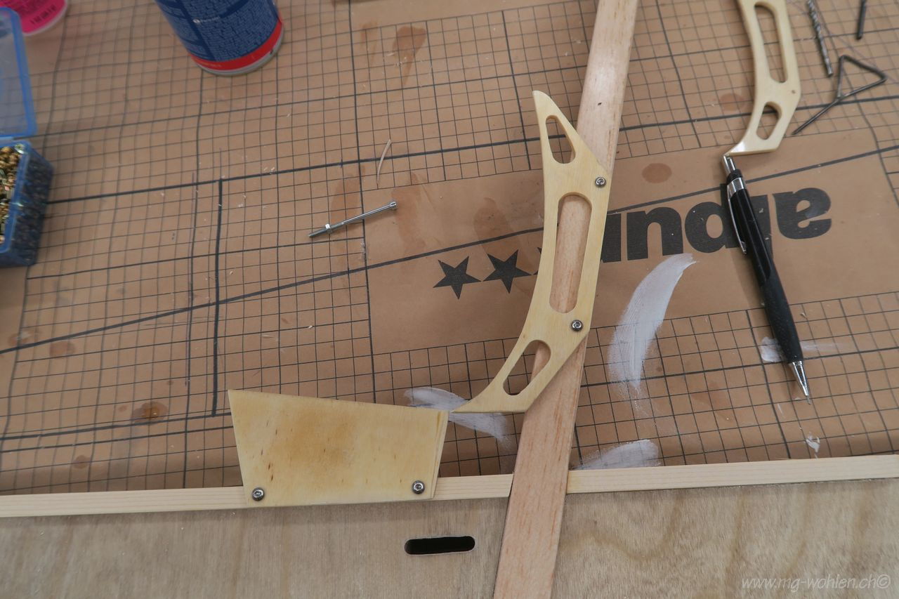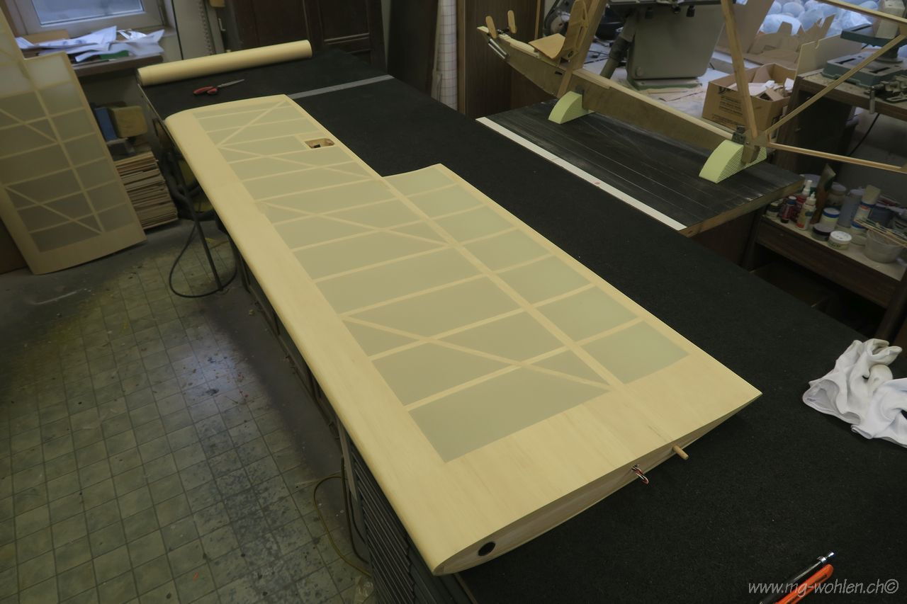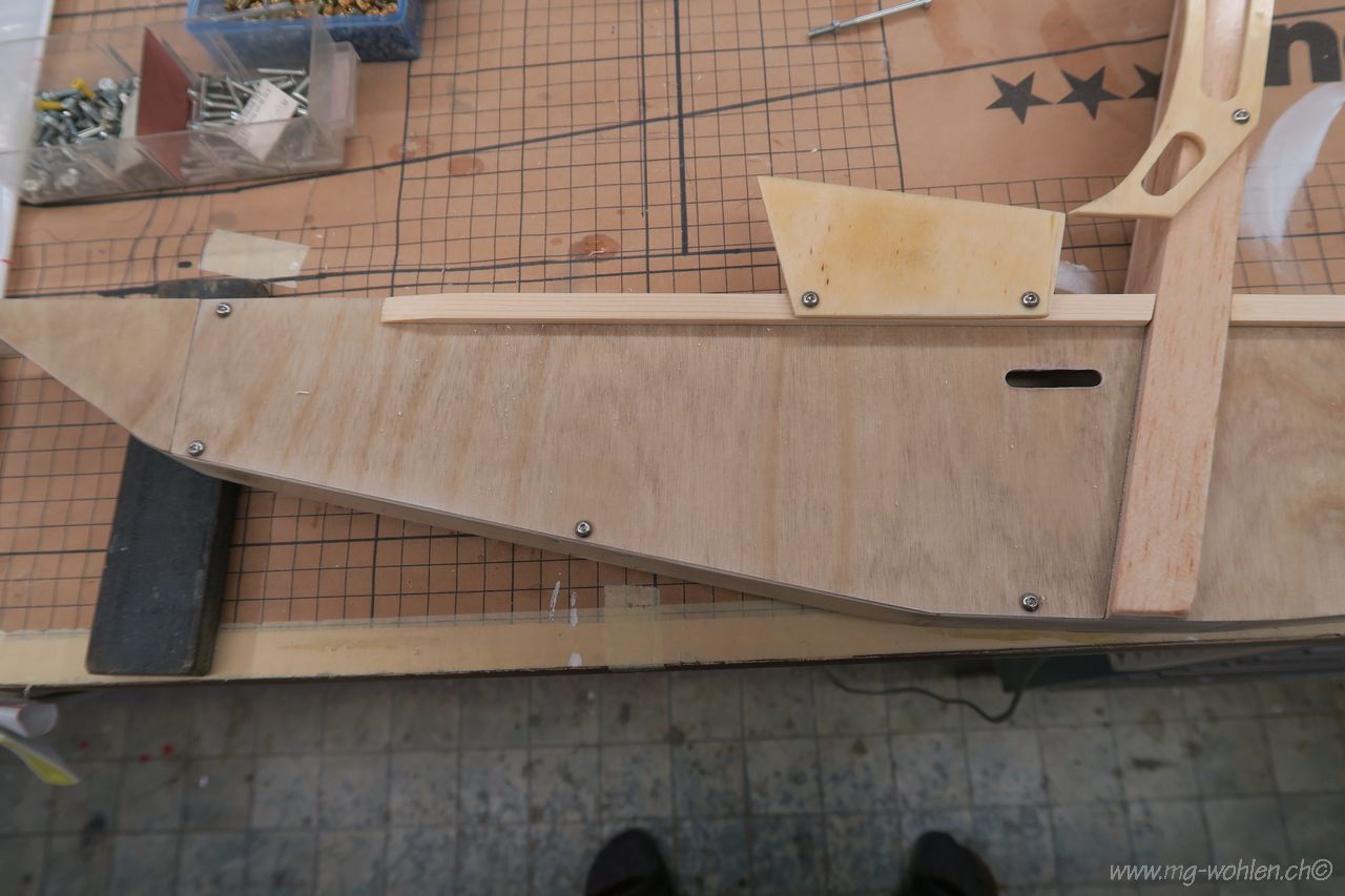Dann wurde beidseitig mit Flugzeugsperrholz beplankt, auf einer Seite natürlich teilweise verschraubt um an die Rc Anlage zu kommen.