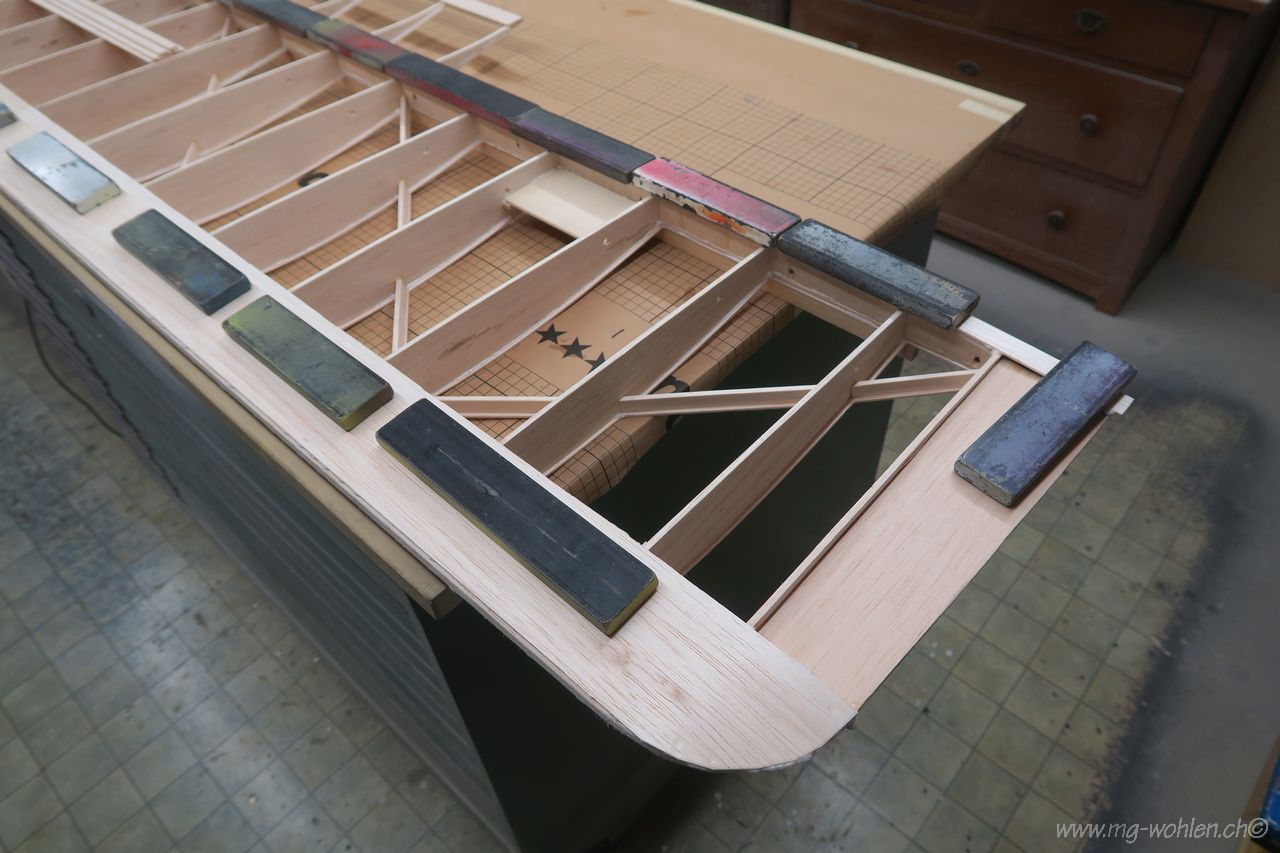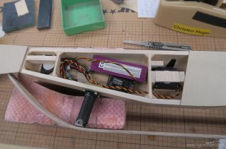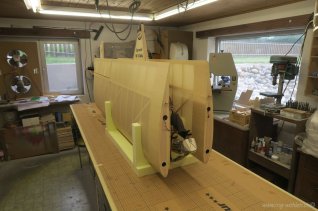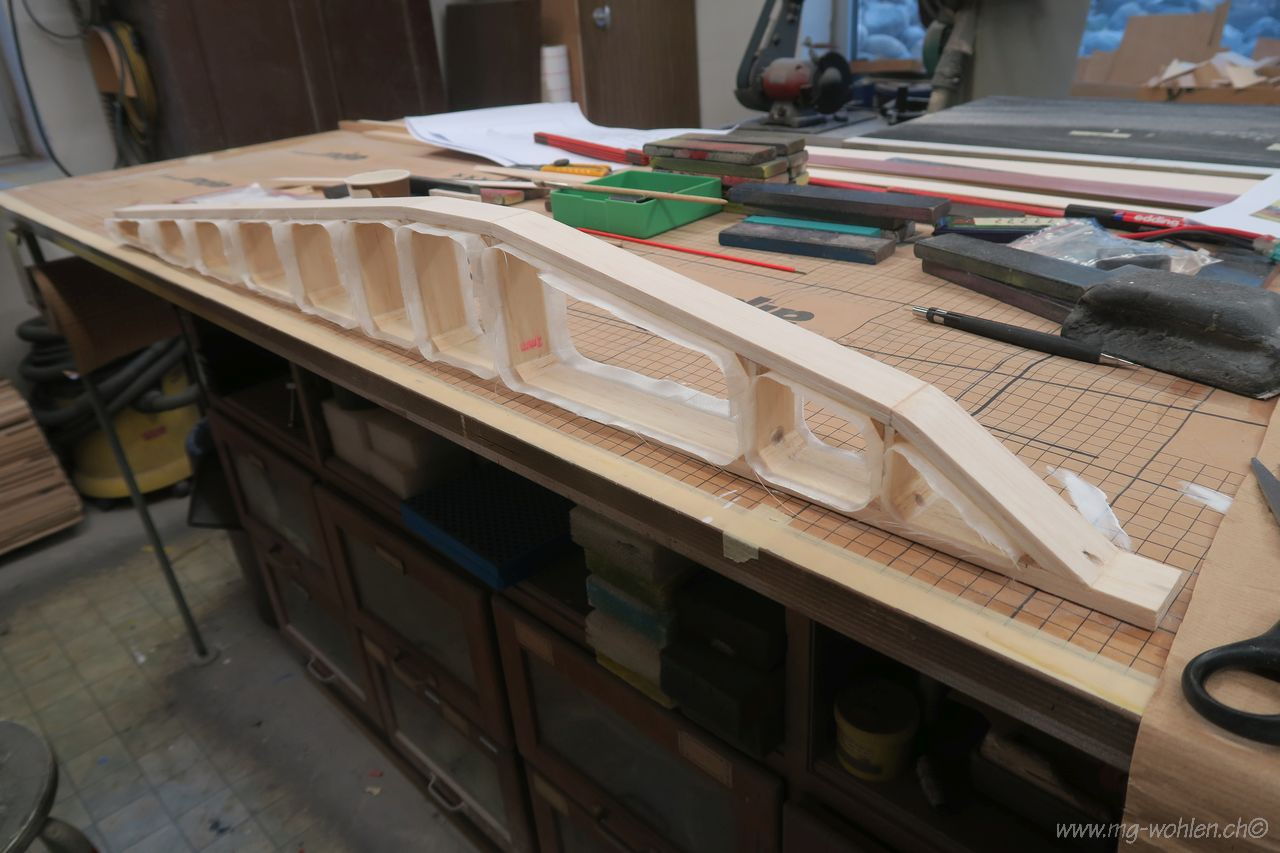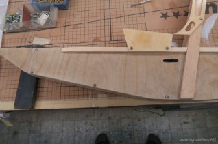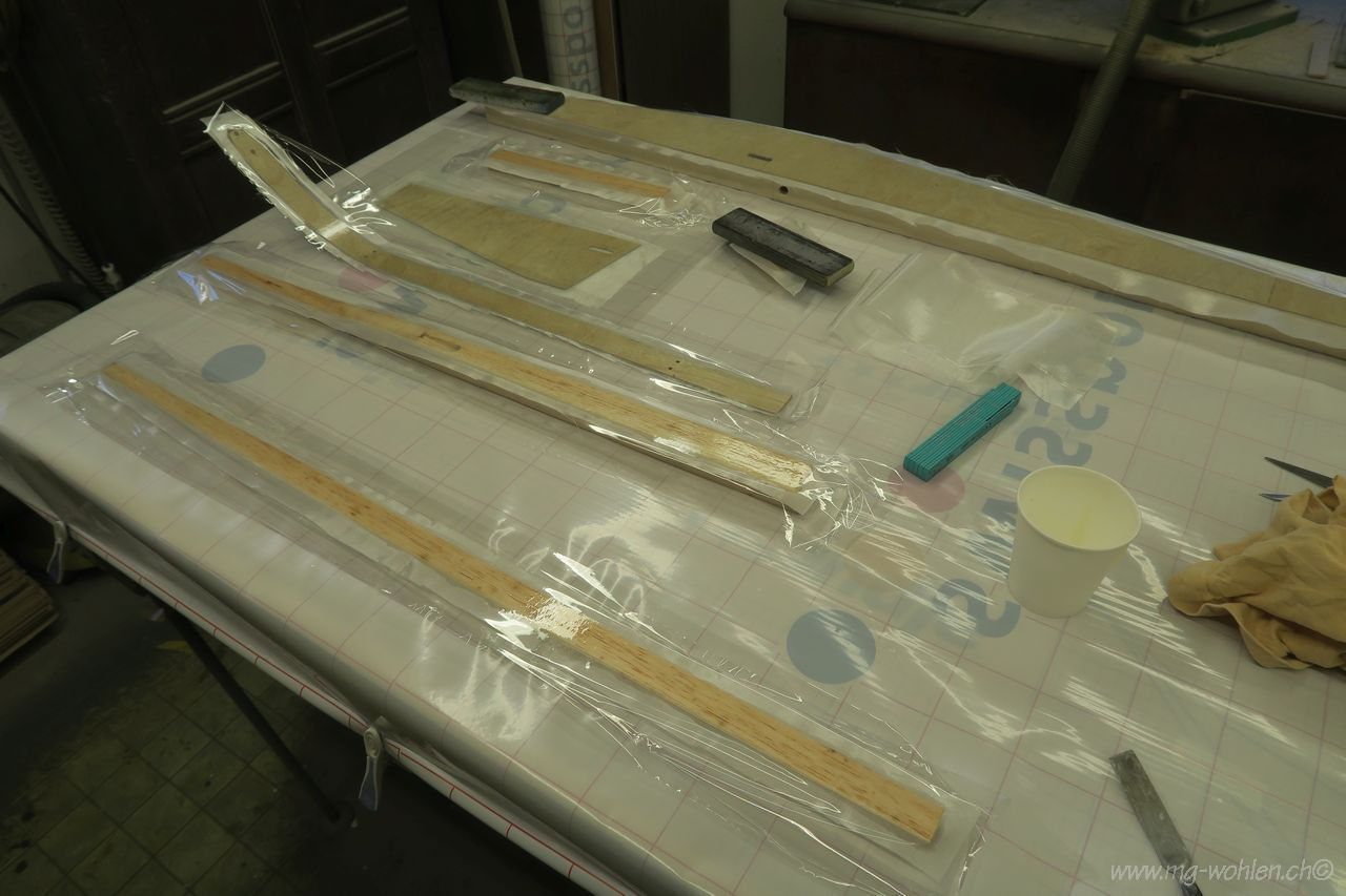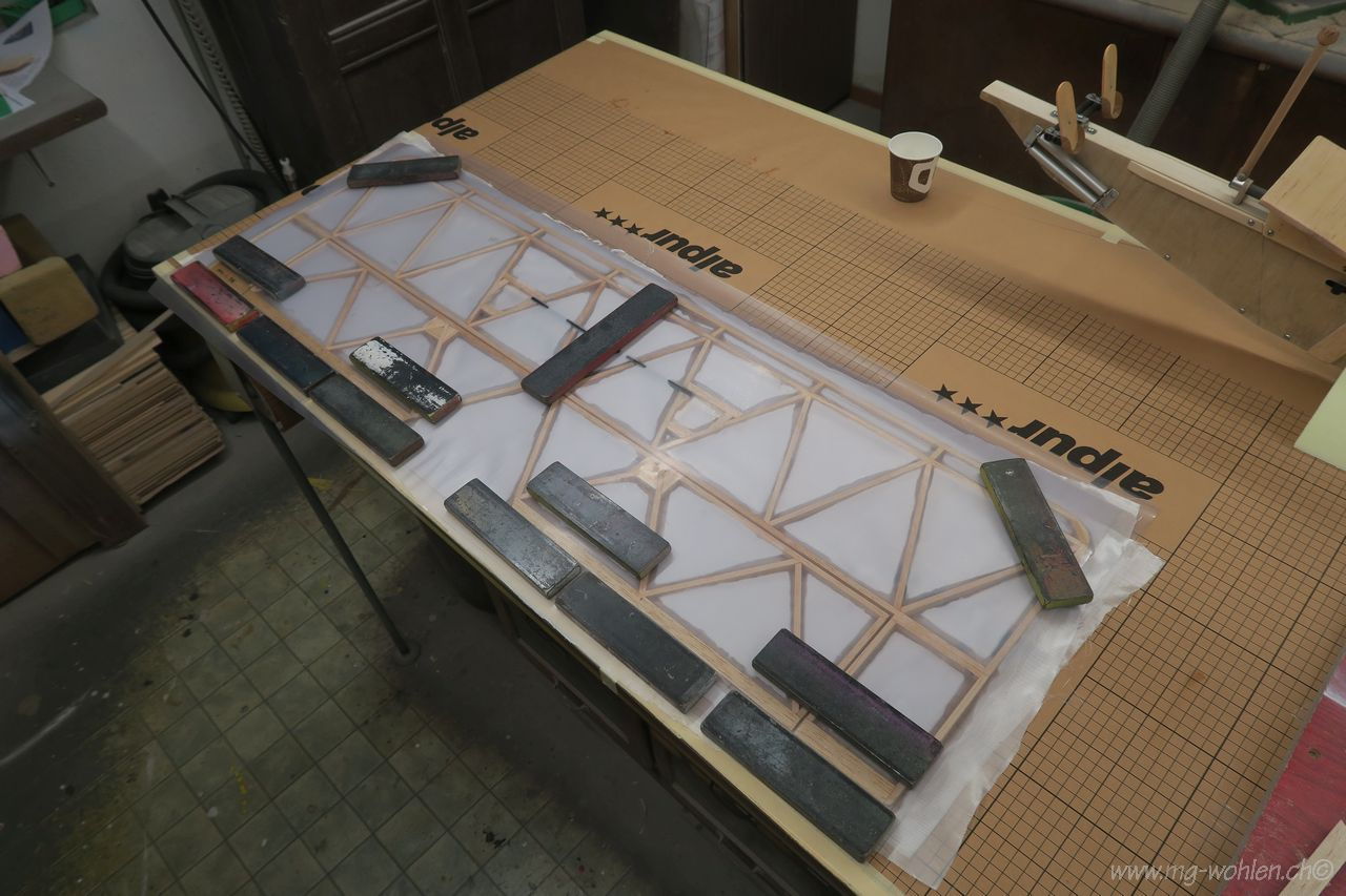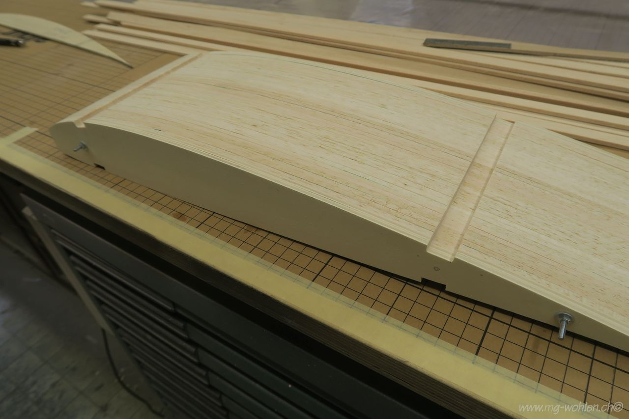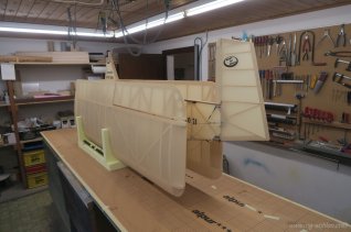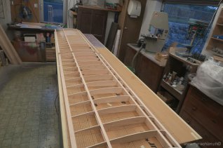 Dann wurde beidseitig mit Flugzeugsperrholz beplankt, auf einer Seite natürlich teilweise verschraubt um an die Rc Anlage zu kommen.