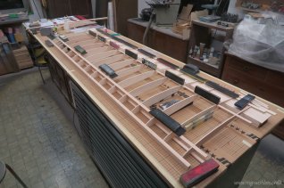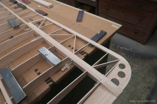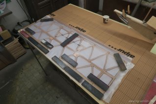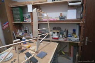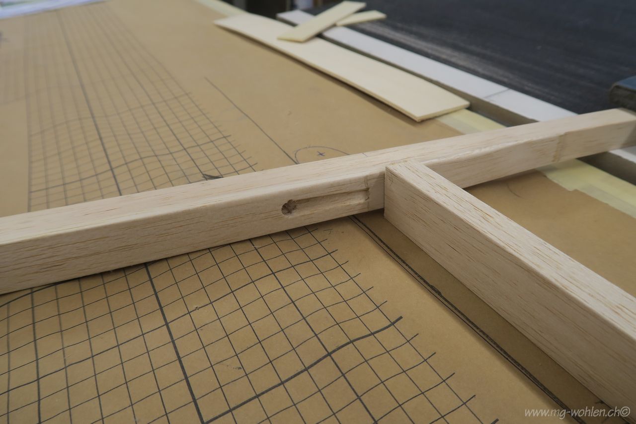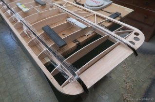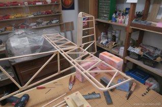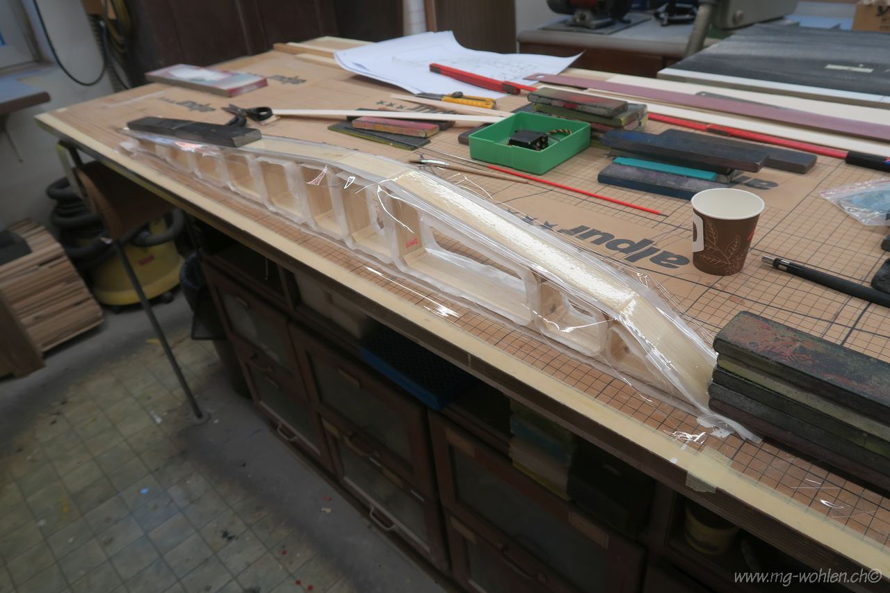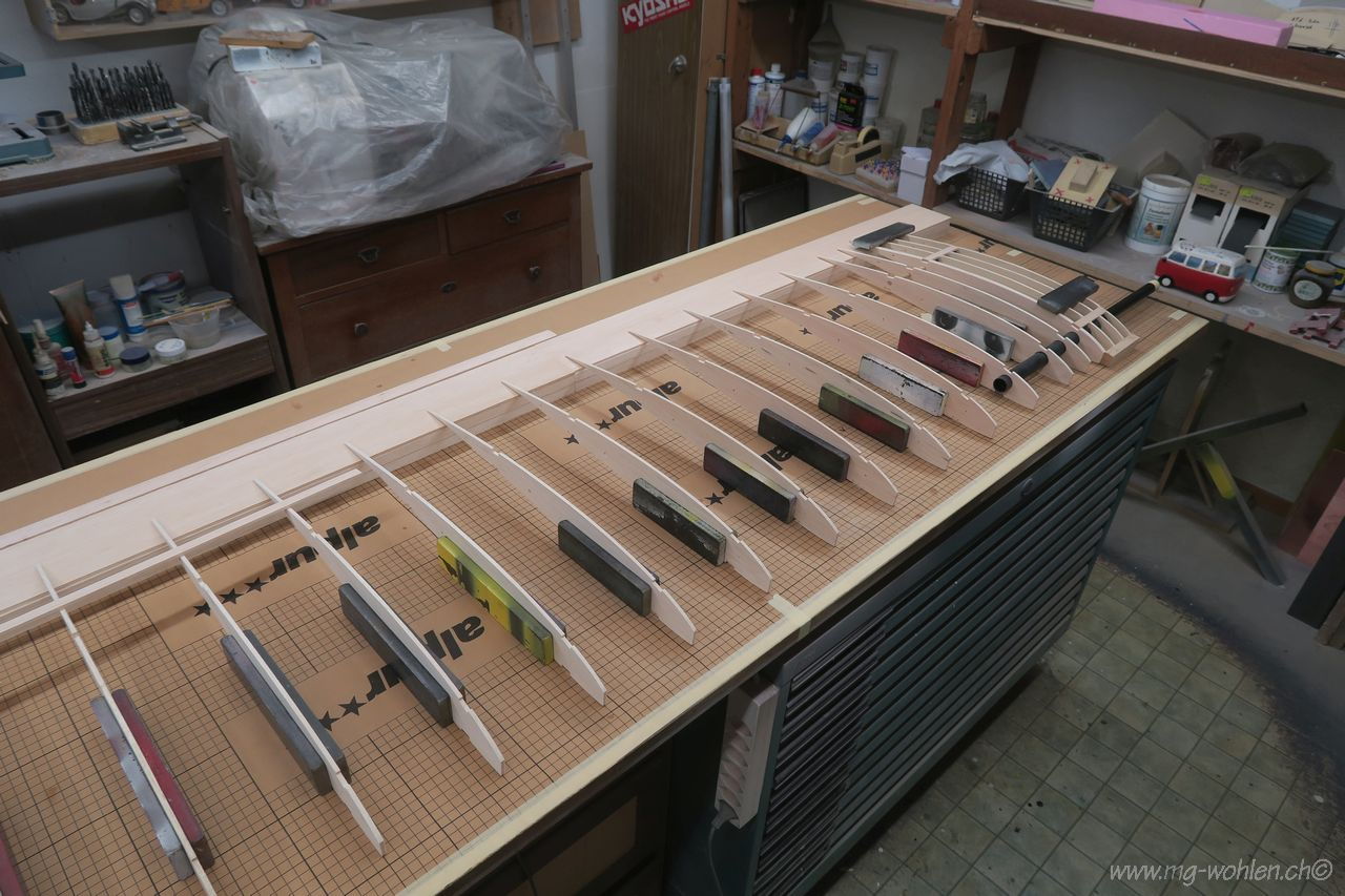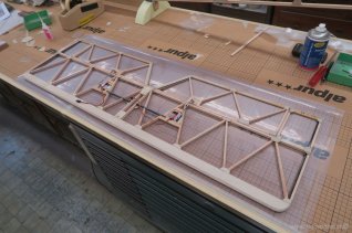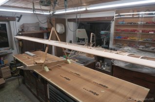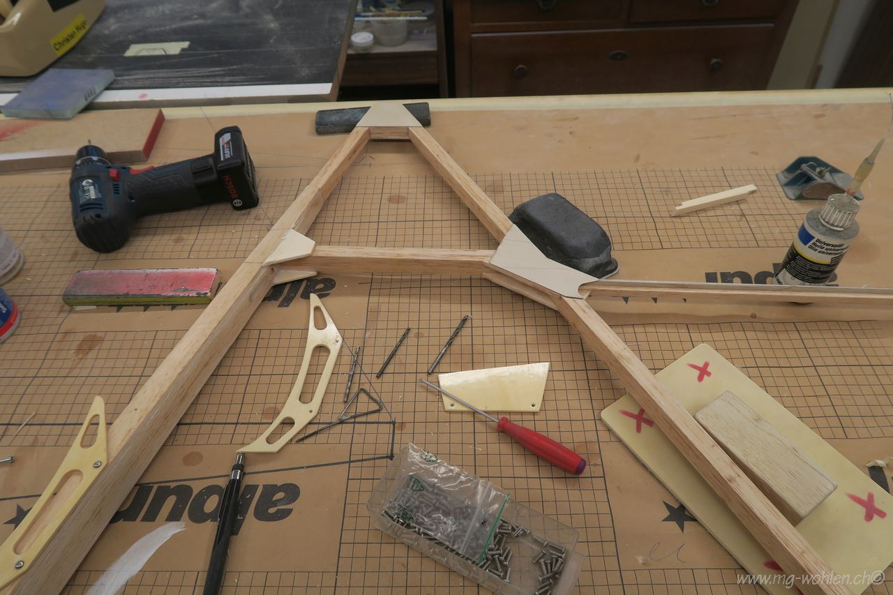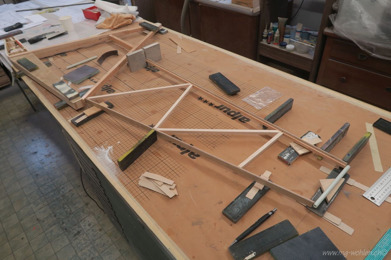 Dann wurde beidseitig mit Flugzeugsperrholz beplankt, auf einer Seite natürlich teilweise verschraubt um an die Rc Anlage zu kommen.