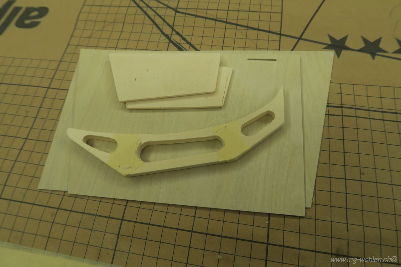 Der hintere Teil wurde mit Flugzeugsperrholz mit Balsa Aufleimer gemacht und fest mit dem Vorderteil verklebt.