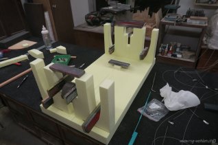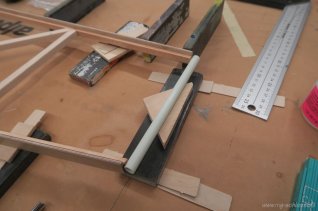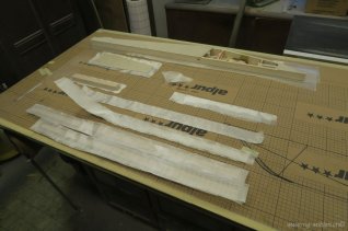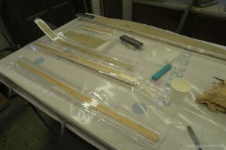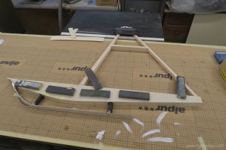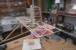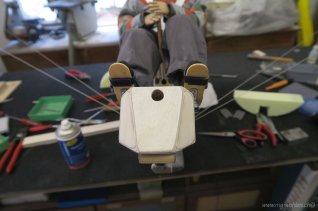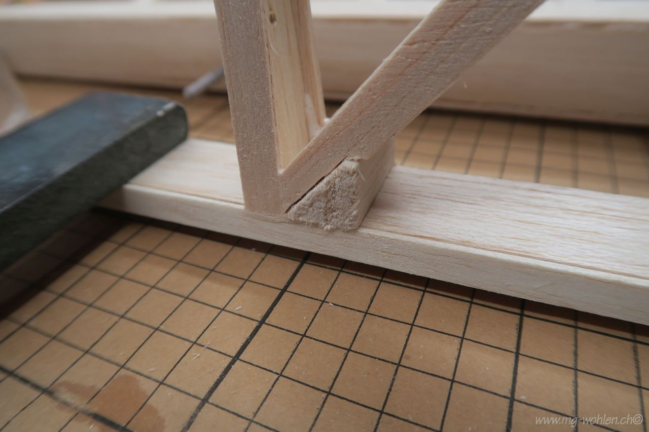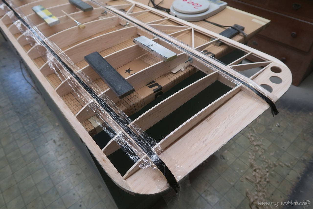 Das vordere Rumpfgerüst wurde aus Balsa hergestellt und zur Stabilität mit 49G Glasgewebe überzogen. Bei den strapazierten stellen wurde das Glasgewebe doppelt aufgetragen.