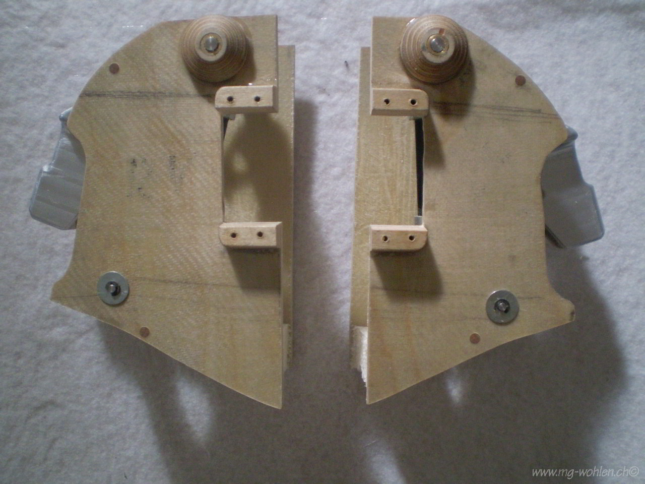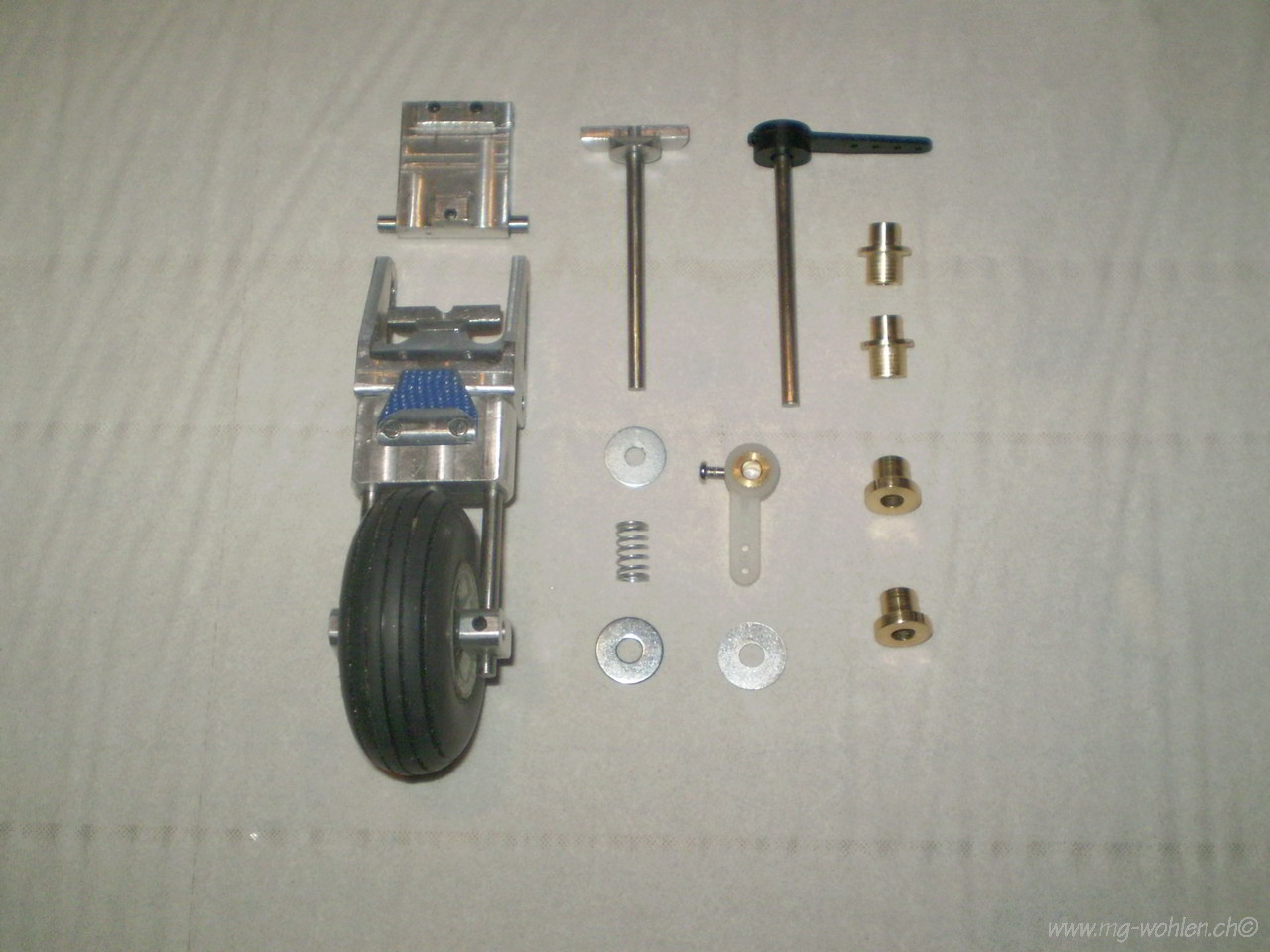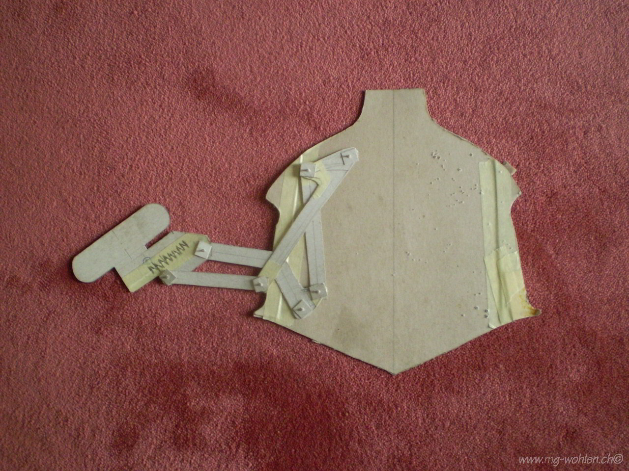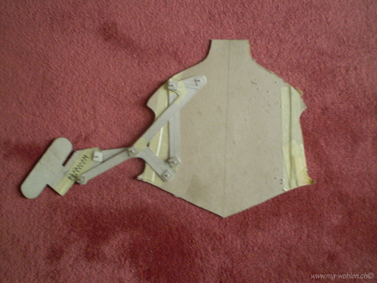 So wurde als erstes das gefederte Hauptfahrwerk „konstruiert“. Wie das funktioniert sieht man wenn die Bilder Nummer 1-6 schnell durchklickt werden. Der Mechanismus des Bugfahrwerkes ist im Prinzip eine schon mehrfach bewährte Konstruktion eines Seglerfahrwerkes.