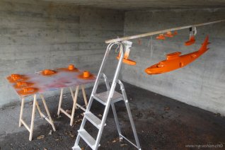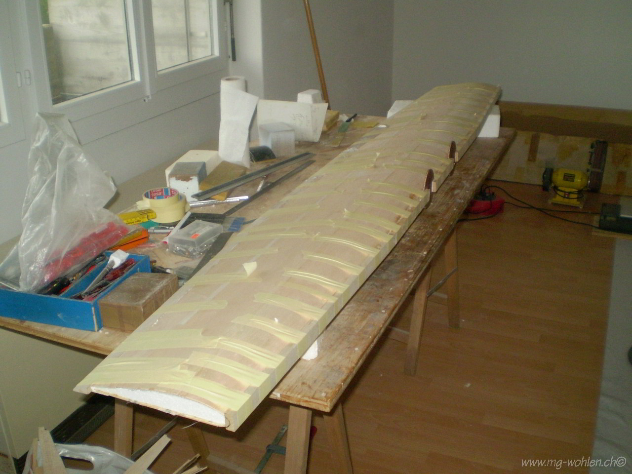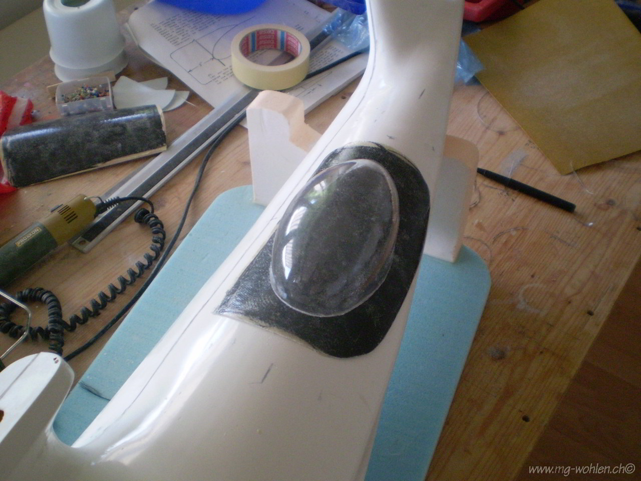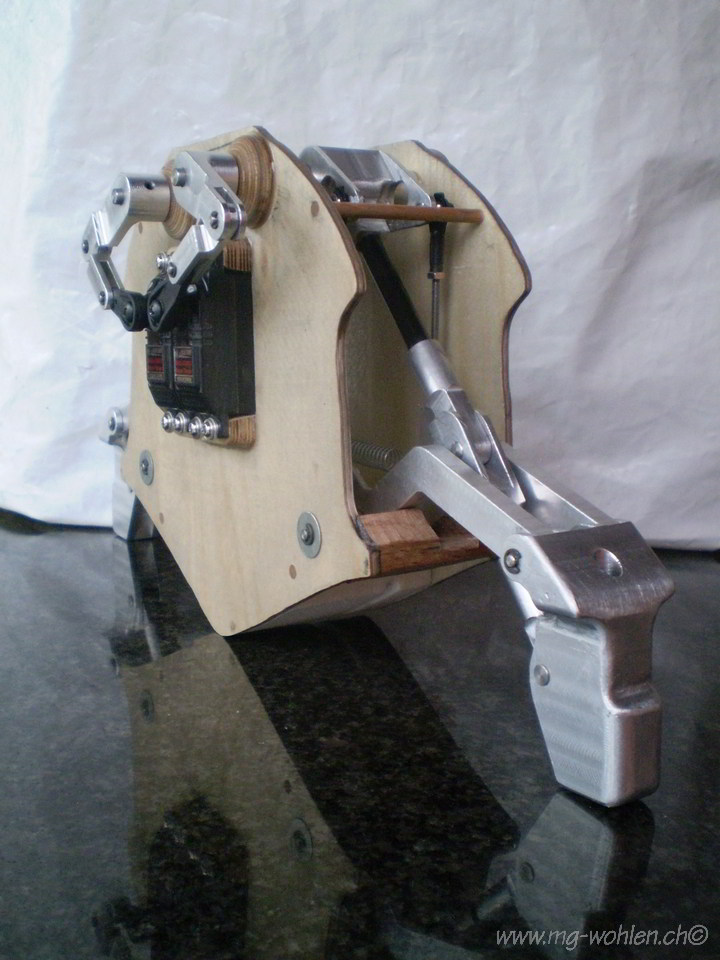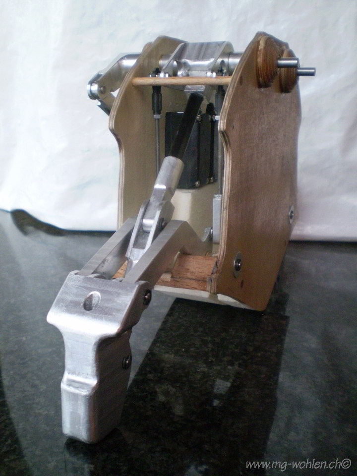 So wurde als erstes das gefederte Hauptfahrwerk „konstruiert“. Wie das funktioniert sieht man wenn die Bilder Nummer 1-6 schnell durchklickt werden. Der Mechanismus des Bugfahrwerkes ist im Prinzip eine schon mehrfach bewährte Konstruktion eines Seglerfahrwerkes.
