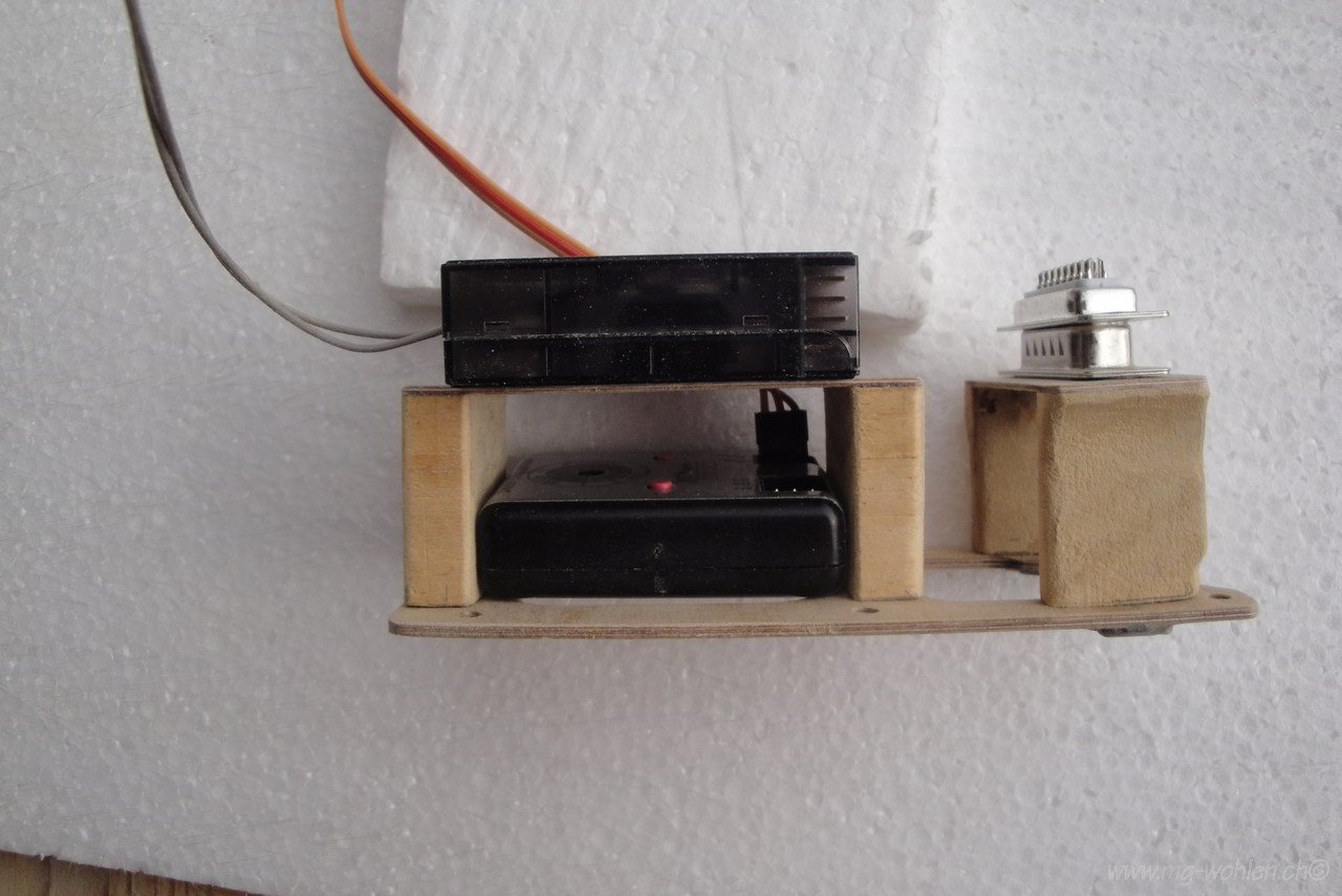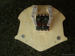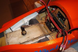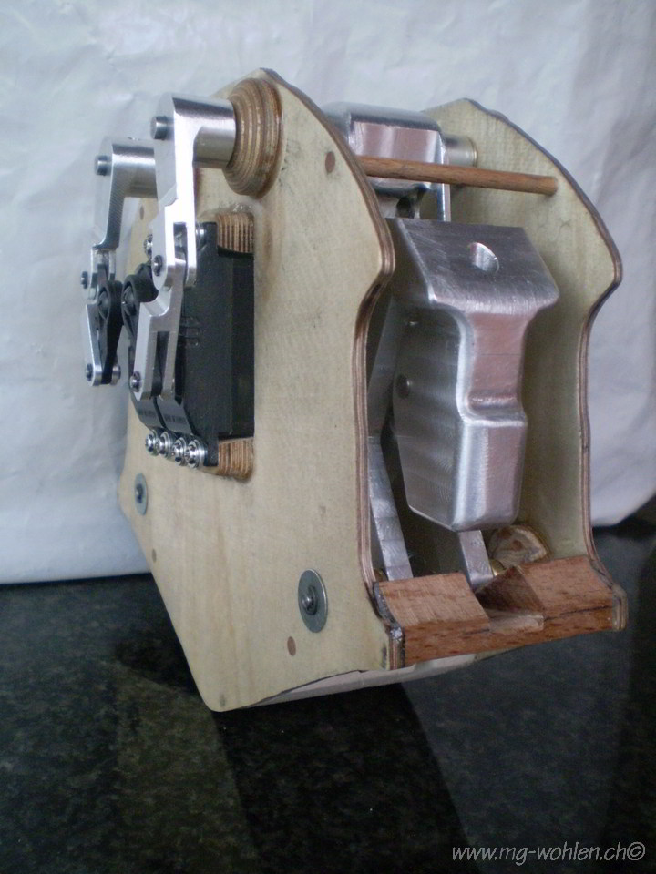 Die beiden Stützschwimmer an den Flügelenden werden je mittels einer leichten „Servoless“-Fahrwerks-Mechanik rauf und runter gefahren.