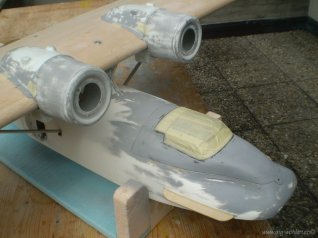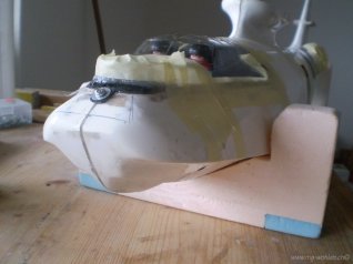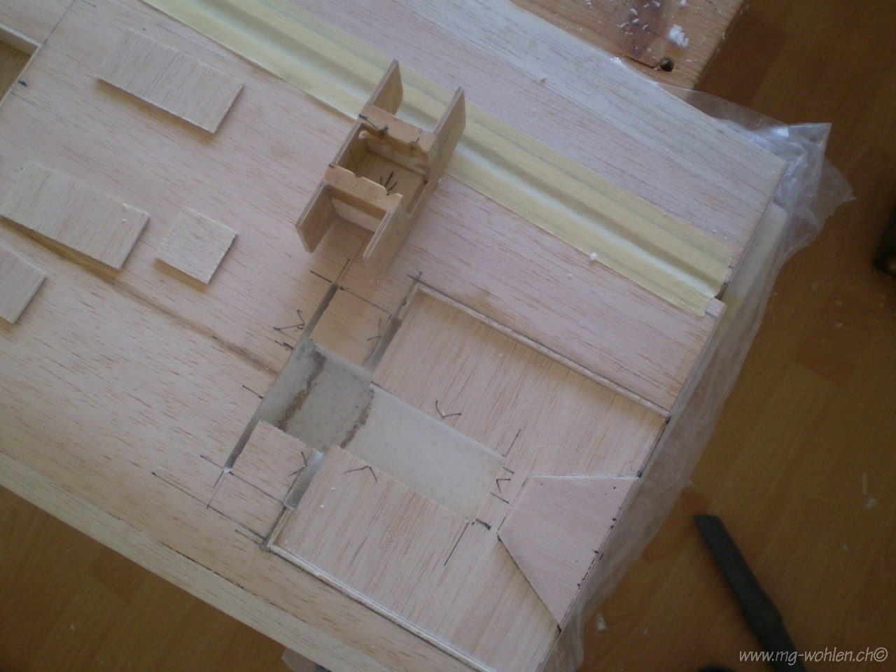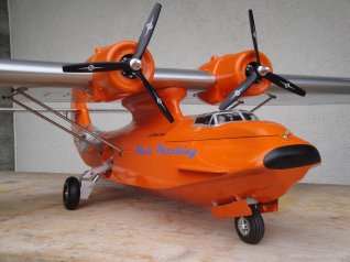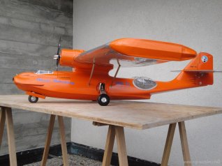 Vor Jahren schenkte mir mein Vereinskollege Remo eine Kartonschachtel voller Balsa- und Sperrholz, einem weiss eingefärbten GFK-Rumpf, Styropor-Kerne für Flügel und Höhenleitwerk und einem Beutel mit Metallteilen. Das Projekt reizte mich, wollte ich doch schon länger ein Modell eines Amphibiens für Land- und Wasserbetrieb bauen.