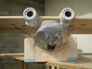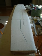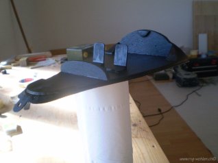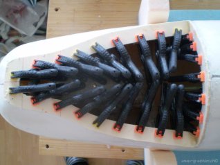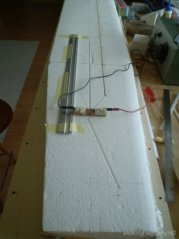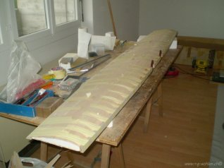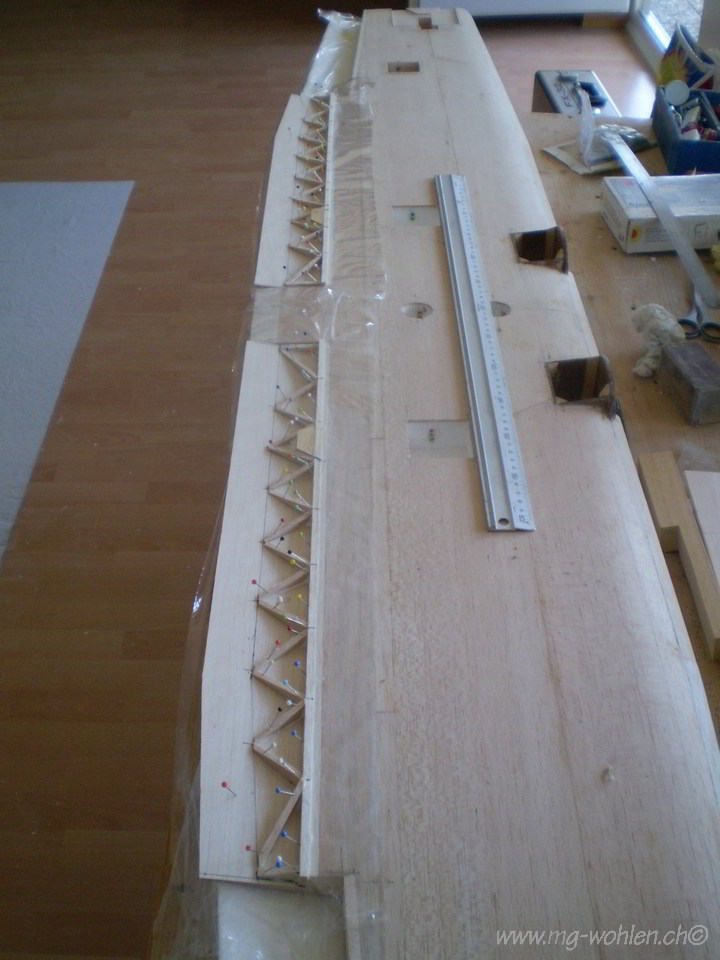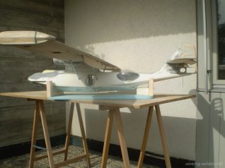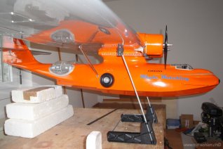 Daheim den Schwerpunkt ausgemessen und siehe da: Er lag bei sagenhaften 33% mittlerer Flügeltiefe, und das bei einem Clark-Y ähnlichem Profil! Also 150 g Blei in die Schnauze und der Schwerpunkt liegt nun bei 25% mittlerer Flügeltiefe. Die Reparatur des Schwimmers war kein Problem und schnell erledigt. Nach 3 Tage war die Catalina wieder startbereit und überwinterte dann aber im Hangar.
