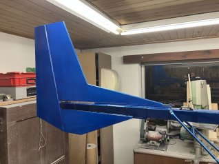 wegen zu wenig Folie musste ich das Seitenleitwerk in Weiss bespannen