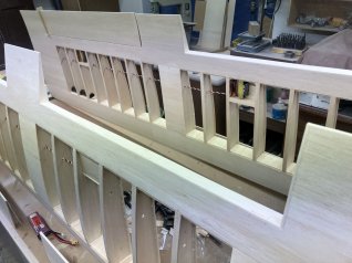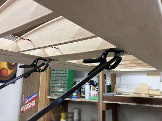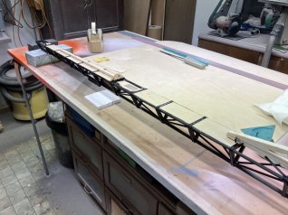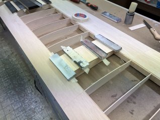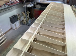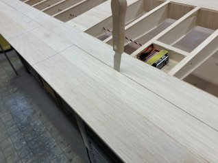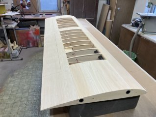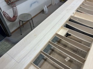 Jetzt wird der ganze Ausleger noch mit 1mm Sperrholz beplankt