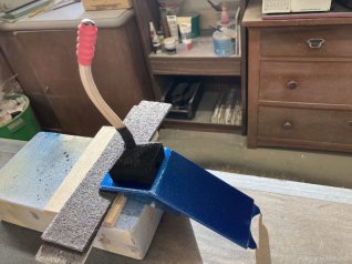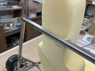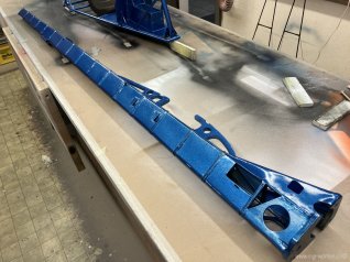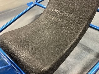 Das Metallgestell ist mit 2K Blau metallic von Ruco Pur gespritzt