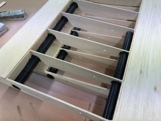 Bis auf die Deckel ist alles fest mit dem Gestell verklebt