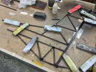 Die Strebenrohre werden abgelängt und verklebt