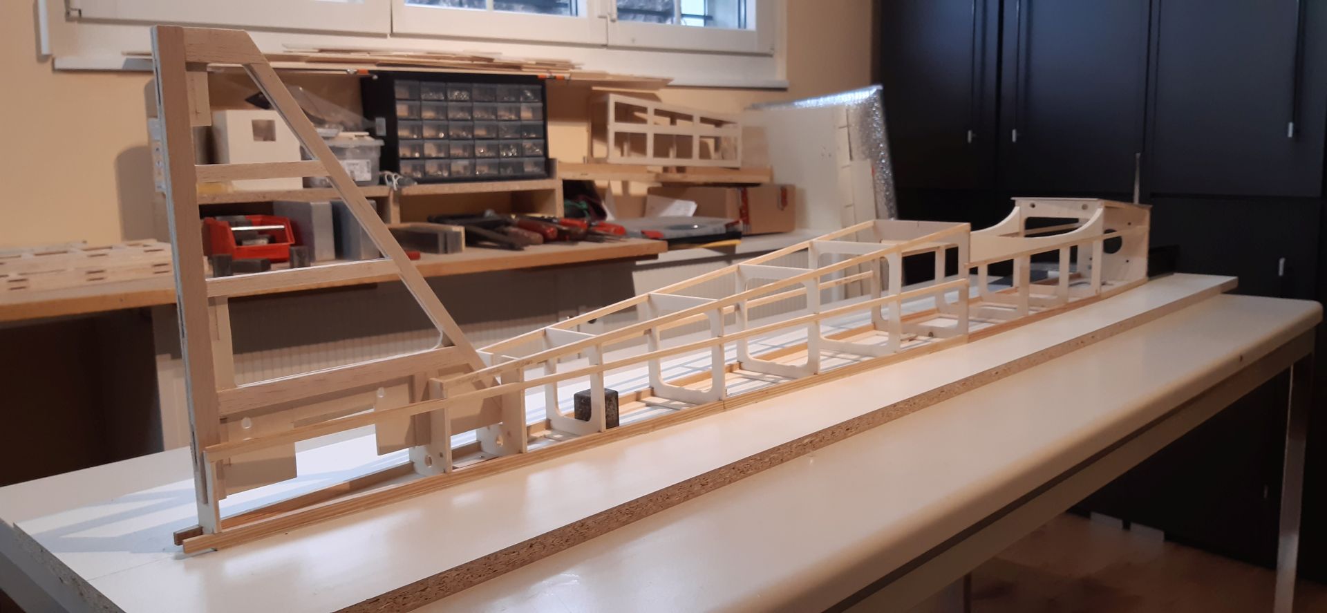 Das Rumpfhiterteil ist um 60 mm verlängert worden und der letzte Rumpfspannt hat die doppelte Höhe. Der Motorspannt wurde in der Breite sowie auch in der Höhe um 10 mm vergrössert. Mit diesen Massnahmen ist der Rumpf verwindungssteifer und vibrationsarmer aufgebaut und es lassen sich dadurch leistungsstarke Verbrennungsmotoren in der Grösse von 40-70 ccm betreiben, was für ein 2-Meter Modellflugzeug ausreichend sein sollte. Eine Schleppkupplung ist ebenfalls verbaut.