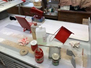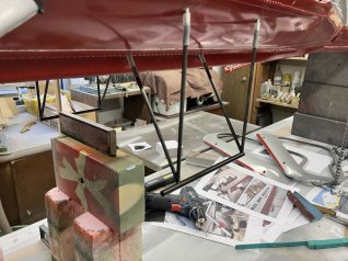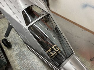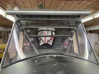 Die V-Streben bei der Frontscheibe werden kopfüber eingeklebt