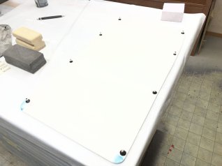 Die unteren Halterungen werden mit Epoxy an der Haube angepasst