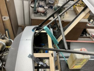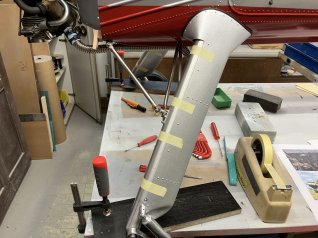 Die Seitenruderanlenkung ist bis zum aushärten fixiert