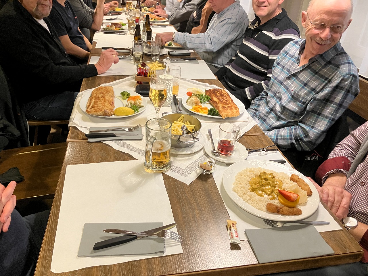 Cordon-Bleu-Check: Modellflieger im Food-Himmel ✈️🧀Das war mal ein Volltreffer! Mit 14 Leuten aus diversen Modellfluggruppen sind wir pünktlich im Restaurant Frohsinn in Seon gelandet. Punkt 18.30 Uhr war die Bestellung raus – und das war auch gut so, denn die Bude war ruckzuck rappelvoll.Obwohl der Laden brummte, lief der Service wie geschmiert. Kurz darauf war „Heavy Metal“ auf den Tellern angesagt: Cordon Bleus in Dimensionen, bei denen jeder Veganer schreiend weggelaufen wäre. Mein Teil war riesig, butterzart und hat sogar noch locker für das Mittagessen am nächsten Tag gereicht. Gefühlt die halbe Mannschaft hat sich am Ende ein „Silberpaket“ für zu Hause schnüren lassen – schliesslich musste ja noch Platz für den Nachtisch bleiben! 🍰Die Stimmung? Absolut gesellig. Es wurde gefachsimpelt, gelacht und Seemannsgarn gesponnen, bis sich die Runde gegen 21 Uhr langsam auflöste. Die harten „Sesselkleber“ hatten am Ende noch Glück: Der Chef höchstpersönlich spendierte eine Runde Bier und wir haben noch ordentlich gequatscht.Fun Fact am Rande: Die hauen dort ca. 450 Cordon Bleus pro Woche raus – jedes davon um die 550 Gramm. Wahnsinn! Der Abend schreit definitiv nach einer Wiederholung.