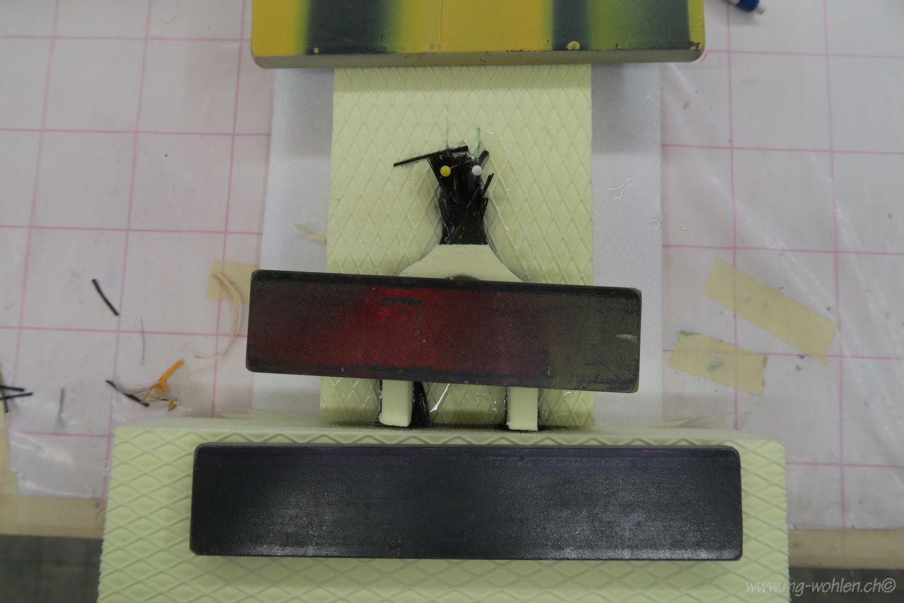 Auf der linken Seite ist der unterere Teil auch schon blau nachgespritzt