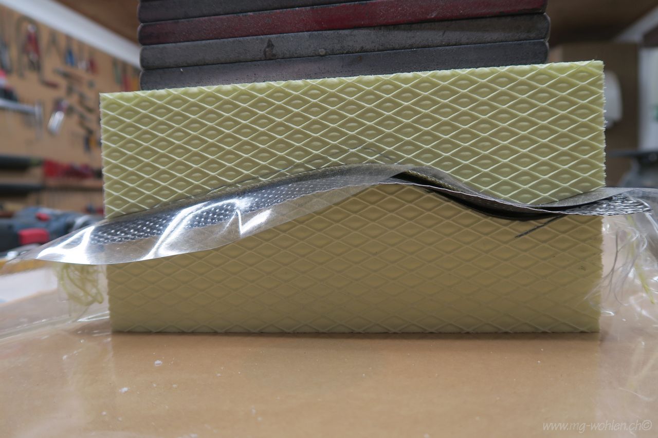Nach dem Verputzen kommen noch zwei CFK Gewebeschläuche darüber